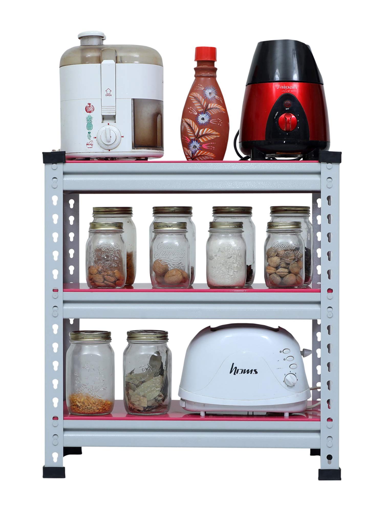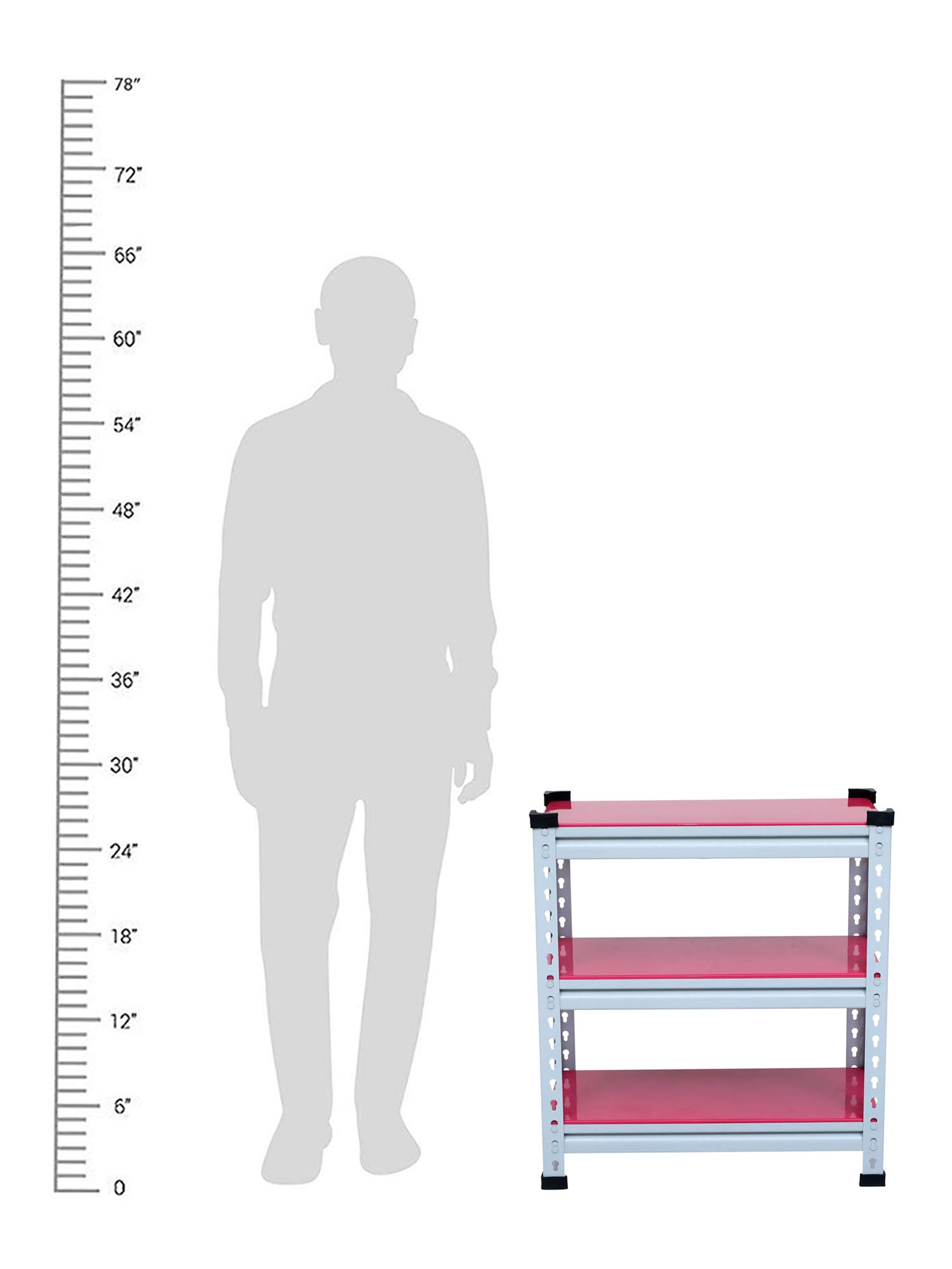 Mil Nil Industries is equipped with highly sophisticated machines supported by an enhanced system of quality analysis. We are always ahead with unmatched quality and durability. Our unique industrial & office Mil-Nil brand products are in various ranges with innovative designs introduced regularly through our reliable team of dealers. Our mission is to provide our customers best quality products with an accurate gauge and weight at a reasonable price. To help the buyer to choose the product sold by multiple sellers, we suggest few validation criteria, few checks to ensure the desired quality and accurate gauge has been received at buyer end. We have mentioned 3 shelves Boltless rack and gauge variation (18, 20, 22) with weight of each product in our every listed product to understand buyers that they are getting accurate gauge with accurate weight. While comparing rates of similar size products consider gauge with weight while deciding. This Pink adjustable shelving unit allows you to customize the heights of each of your shelves, which hold up to 220 lbs each. And its versatility allows you to get organized in your kitchen, your garage, your basement… really anywhere.