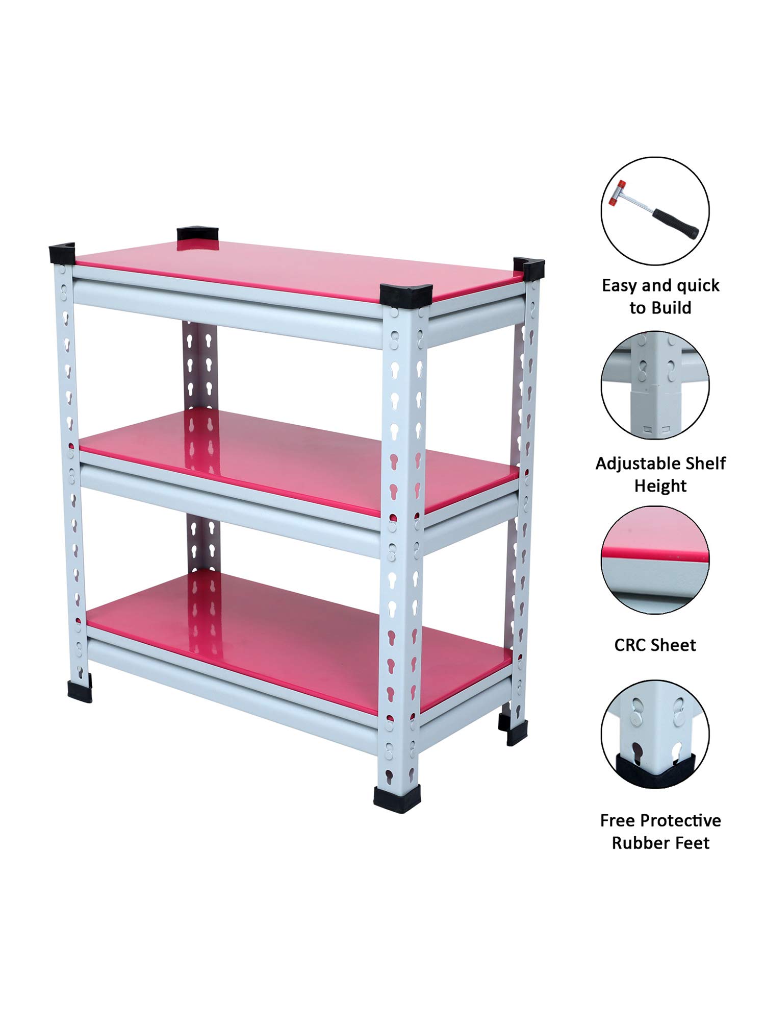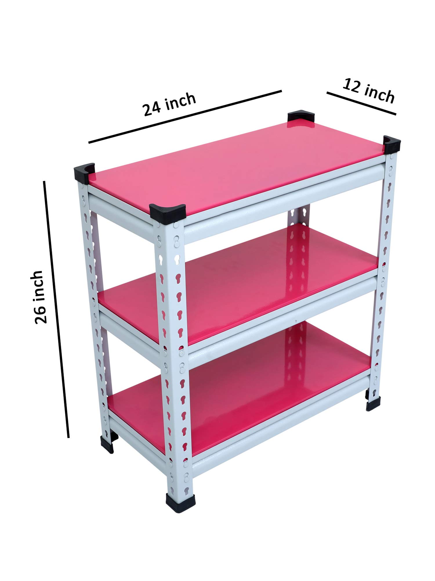 Item NameMil-Nil Boltless Prime CRC Sheet 26x24x12 Inch Multipurpose Storage Rack with 3 Shelves 18 Gauge (Pink)