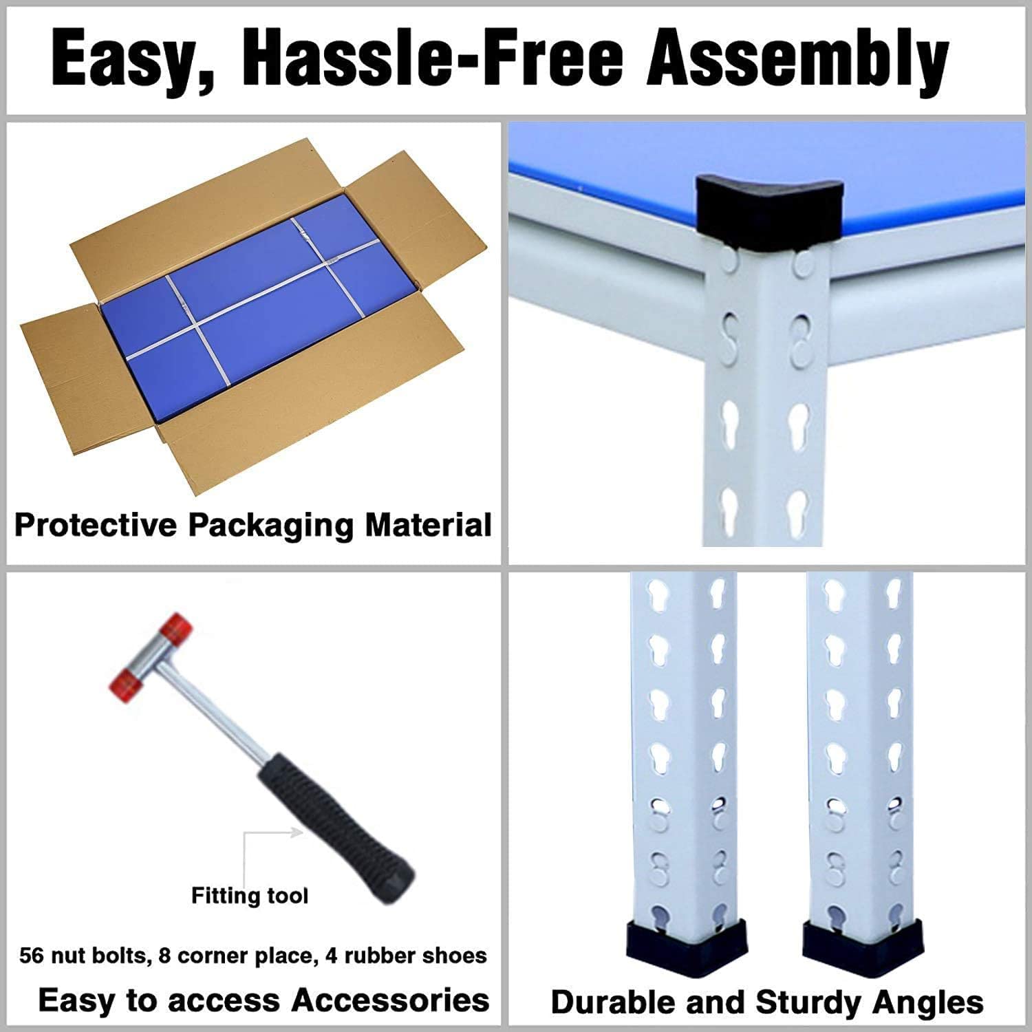 Mil Nil Industries is equipped with highly sophisticated machines supported by an enhanced system of quality analysis. We are always ahead with unmatched quality and durability. Our unique industrial & office Mil-Nil brand products are in various ranges with innovative designs introduced regularly through our reliable team of dealers. Our mission is to provide our customers best quality products with an accurate gauge and weight at a reasonable price. To help the buyer to choose the product sold by multiple sellers, we suggest few validation criteria, few checks to ensure the desired quality and accurate gauge has been received at buyer end. We have mentioned 3 shelves Boltless rack and gauge variation (18, 20, 22) with weight of each product in our every listed product to understand buyers that they are getting accurate gauge with accurate weight. While comparing rates of similar size products consider gauge with weight while deciding. This blue adjustable shelving unit allows you to customize the heights of each of your shelves, which hold up to 220 lbs each. And its versatility allows you to get organized in your kitchen, your garage, your basement… really anywhere.