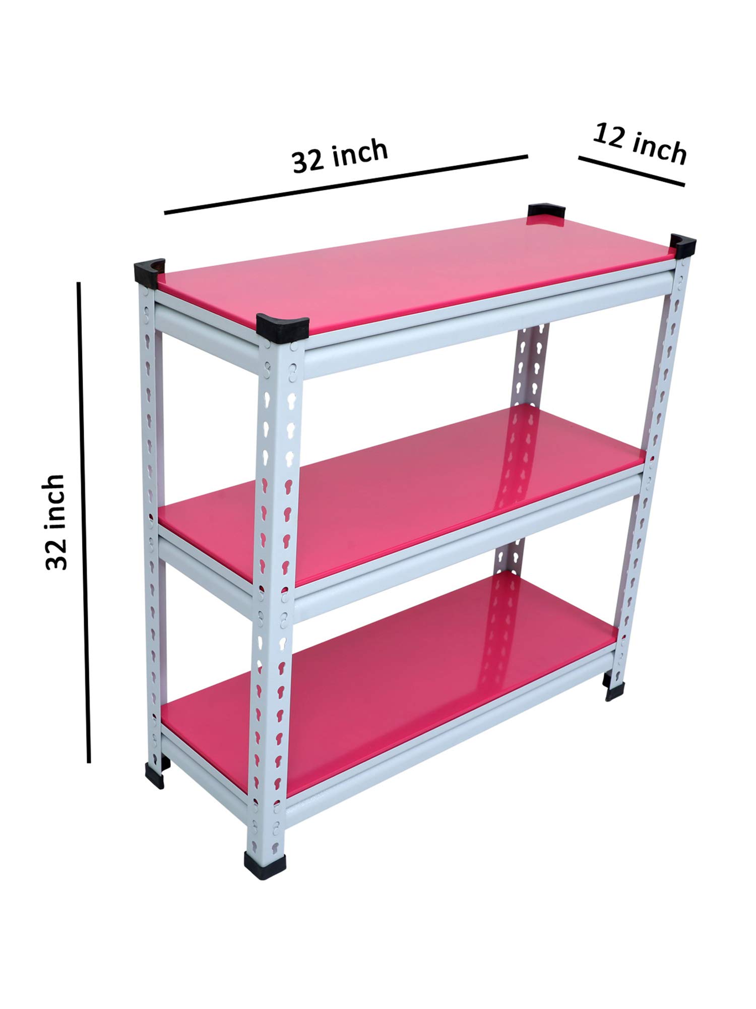 Mil-Nil Boltless Prime CRC Sheet 32x32x12 Inch Multipurpose Storage Business and Industrial Rack with 3 Shelves 22 Gauge (Pink)