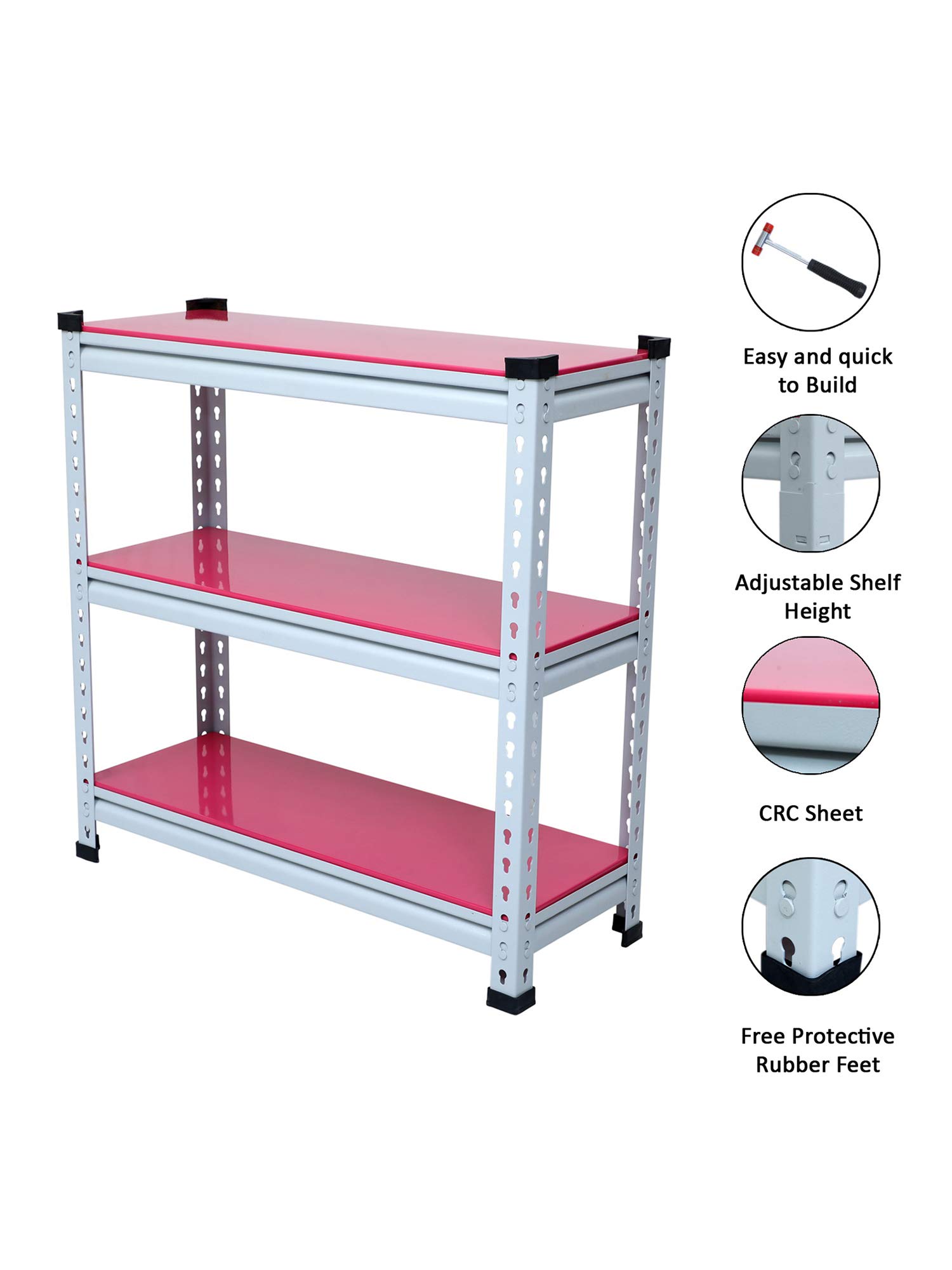 Mil Nil Industries is equipped with highly sophisticated machines supported by an enhanced system of quality analysis. We are always ahead with unmatched quality and durability. Our unique industrial & office Mil-Nil brand products are in various ranges with innovative designs introduced regularly through our reliable team of dealers. Our mission is to provide our customers best quality products with an accurate gauge and weight at a reasonable price. To help the buyer to choose the product sold by multiple sellers, we suggest few validation criteria, few checks to ensure the desired quality and accurate gauge has been received at buyer end. We have mentioned 3 shelves Boltless rack and gauge variation (18, 20, 22) with weight of each product in our every listed product to understand buyers that they are getting accurate gauge with accurate weight. While comparing rates of similar size products consider gauge with weight while deciding. This Pink adjustable shelving unit allows you to customize the heights of each of your shelves, which hold up to 220 lbs each. And its versatility allows you to get organized in your kitchen, your garage, your basement… really anywhere.