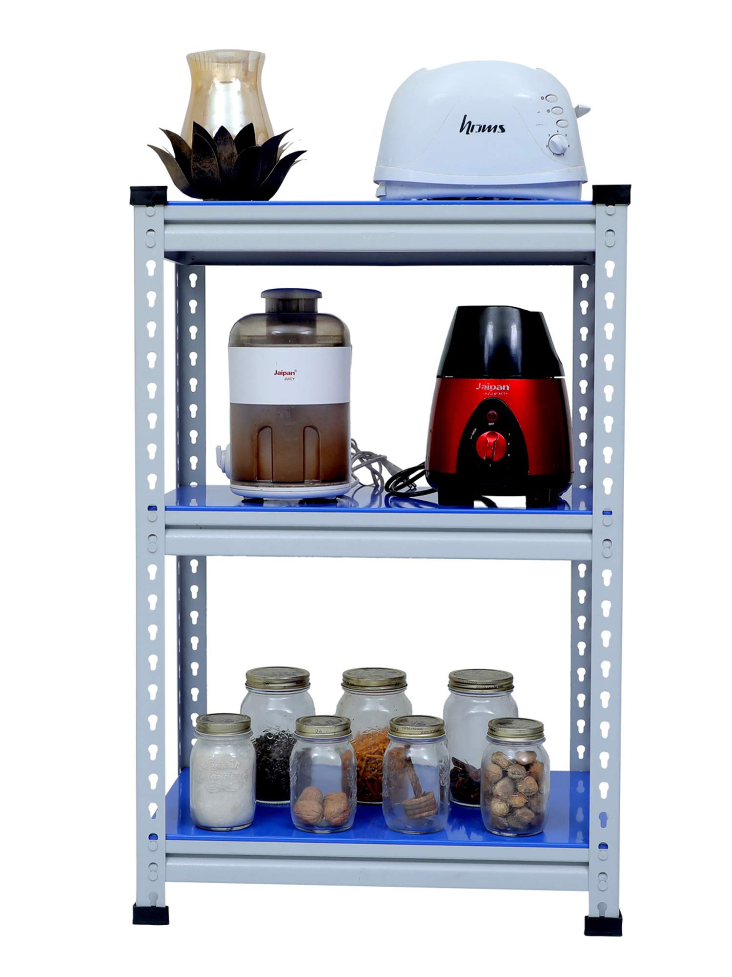 Key FeaturesMaterial Type: Prime CRC Sheet, Free Protective Rubber Feet. Usage: It's a Multipurpose boltless rack which can be used as kitchen racks, book racks, cloth racks, office racks and Industries rack etc.