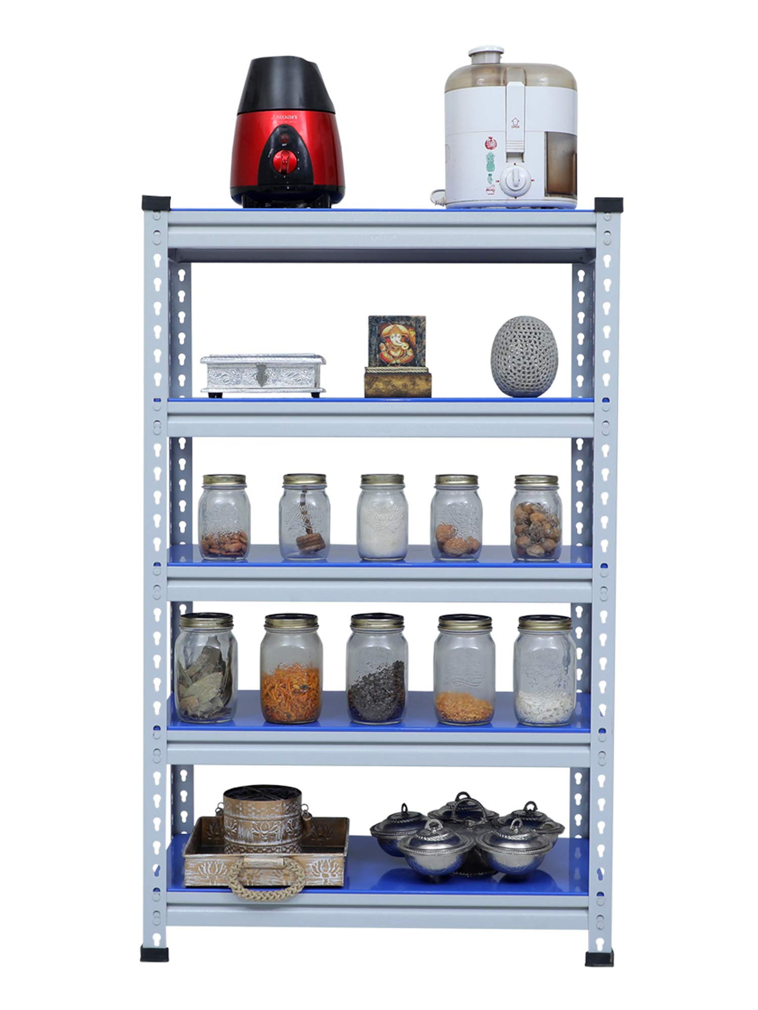 Mil Nil Industries is equipped with highly sophisticated machines supported by an enhanced system of quality analysis. We are always ahead with unmatched quality and durability. Our unique industrial & office Mil-Nil brand products are in various ranges with innovative designs introduced regularly through our reliable team of dealers. Our mission is to provide our customers best quality products with an accurate gauge and weight at a reasonable price. To help the buyer to choose the product sold by multiple sellers, we suggest few validation criteria, few checks to ensure the desired quality and accurate gauge has been received at buyer end. We have mentioned 5 shelves Boltless rack and gauge variation (18, 20, 22) with weight of each product in our every listed product to understand buyers that they are getting accurate gauge with accurate weight. While comparing rates of similar size products consider gauge with weight while deciding. This blue adjustable shelving unit allows you to customize the heights of each of your shelves, which hold up to 220 lbs each. And its versatility allows you to get organized in your kitchen, your garage, your basement… really anywhere.