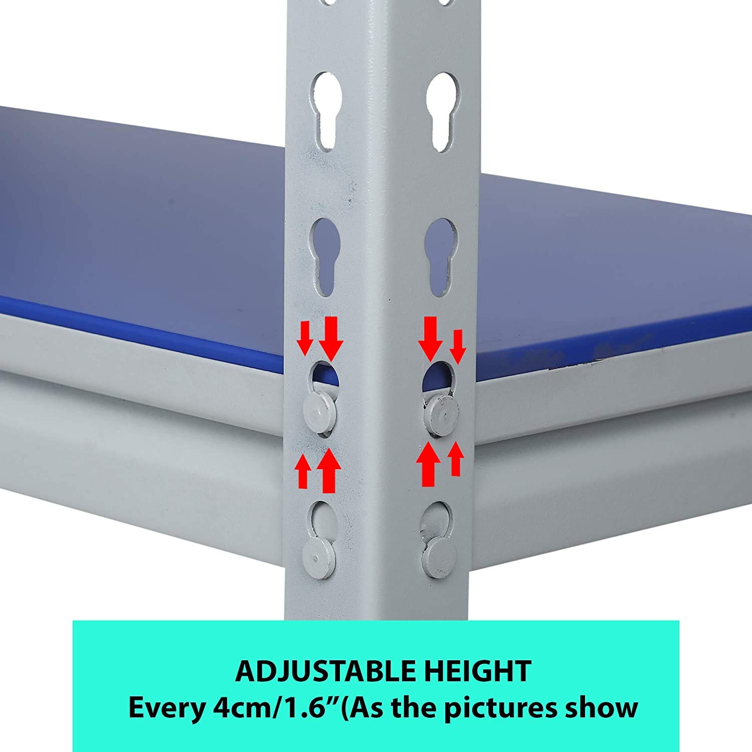 Mil Nil Industries is equipped with highly sophisticated machines supported by an enhanced system of quality analysis. We are always ahead with unmatched quality and durability. Our unique industrial & office Mil-Nil brand products are in various ranges with innovative designs introduced regularly through our reliable team of dealers. Our mission is to provide our customers best quality products with an accurate gauge and weight at a reasonable price. To help the buyer to choose the product sold by multiple sellers, we suggest few validation criteria, few checks to ensure the desired quality and accurate gauge has been received at buyer end. We have mentioned 5 shelves Boltless rack and gauge variation (18, 20, 22) with weight of each product in our every listed product to understand buyers that they are getting accurate gauge with accurate weight. While comparing rates of similar size products consider gauge with weight while deciding. This blue adjustable shelving unit allows you to customize the heights of each of your shelves, which hold up to 220 lbs each. And its versatility allows you to get organized in your kitchen, your garage, your basement… really anywhere.