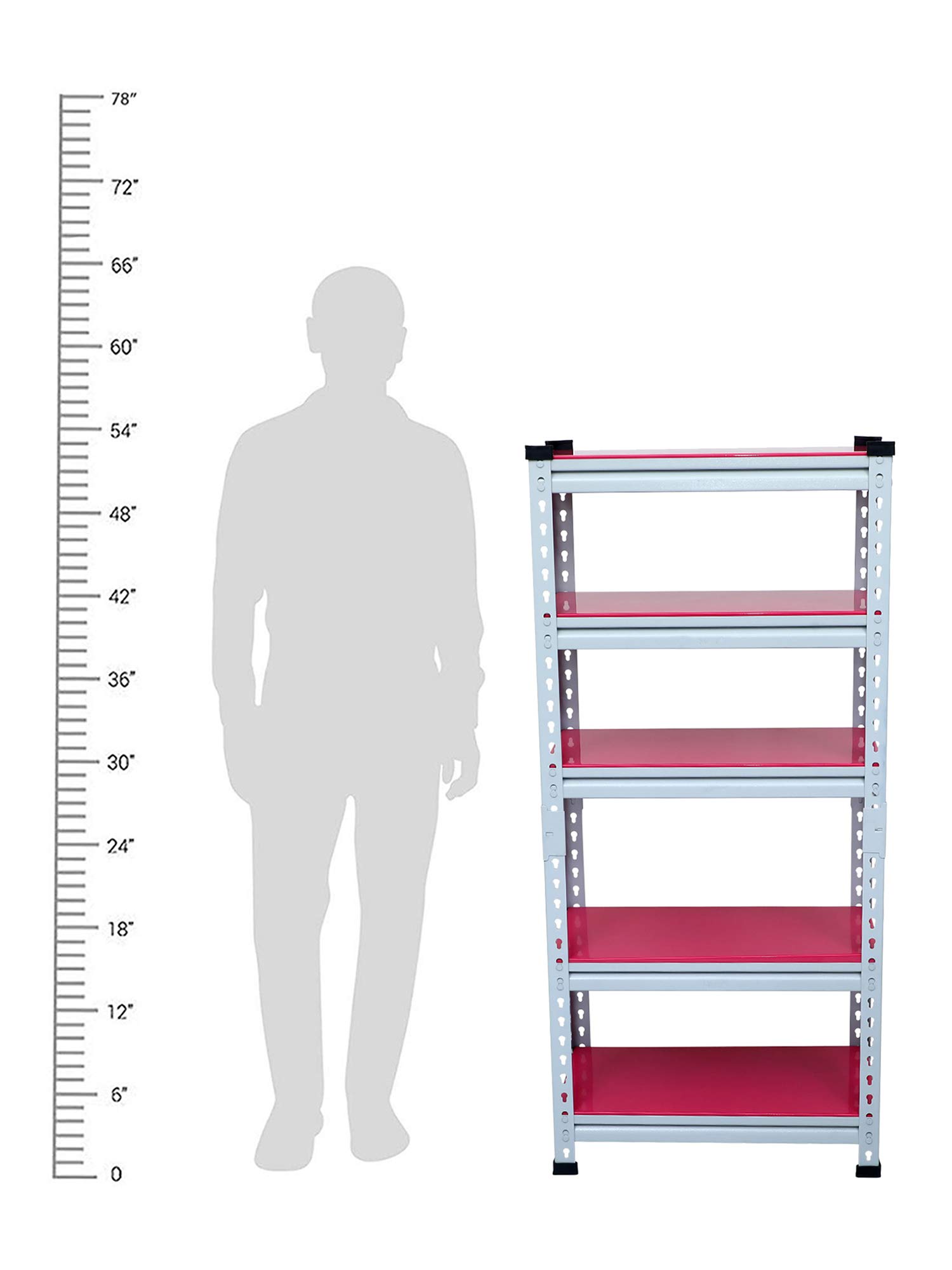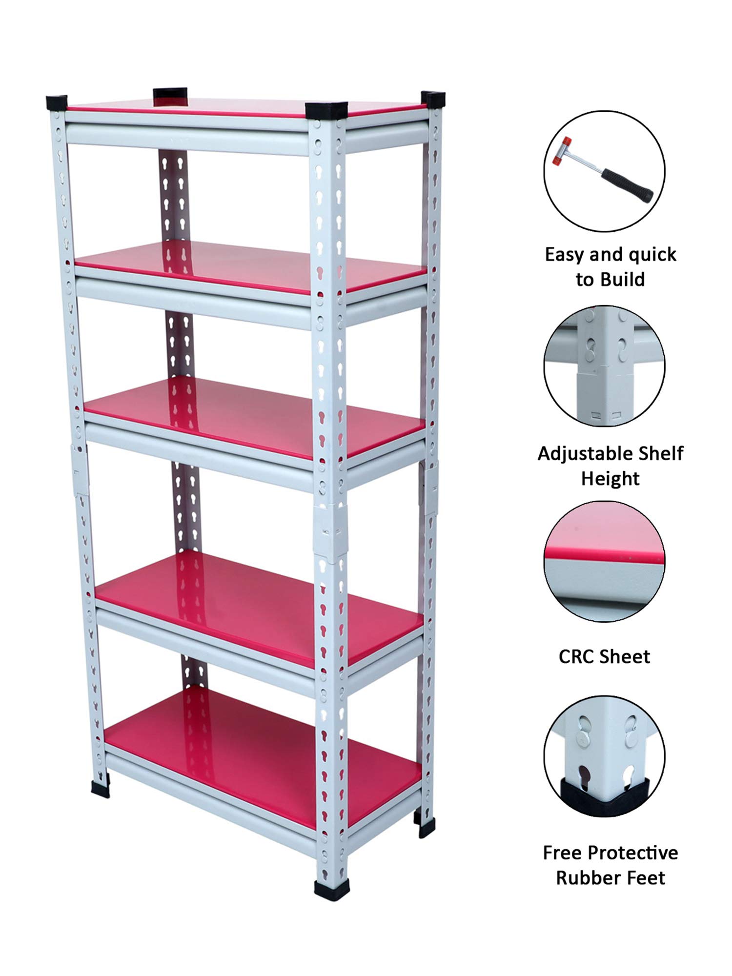 Item NameMil-Nil Boltless Prime CRC Sheet 52x24x12 Inch Multipurpose Storage Business and Industrial Rack with 5 Shelves 22 Gauge-Pink