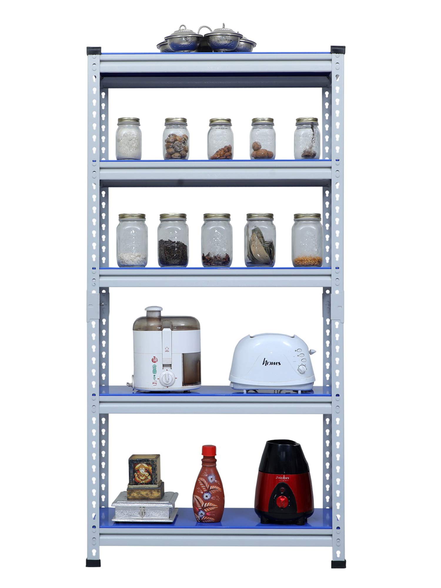 Key FeaturesMaterial Type: Prime CRC Sheet, Free Protective Rubber Feet. Usage: It's a Multipurpose boltless rack which can be used as kitchen racks, book racks, cloth racks, office racks and Industries rack etc.