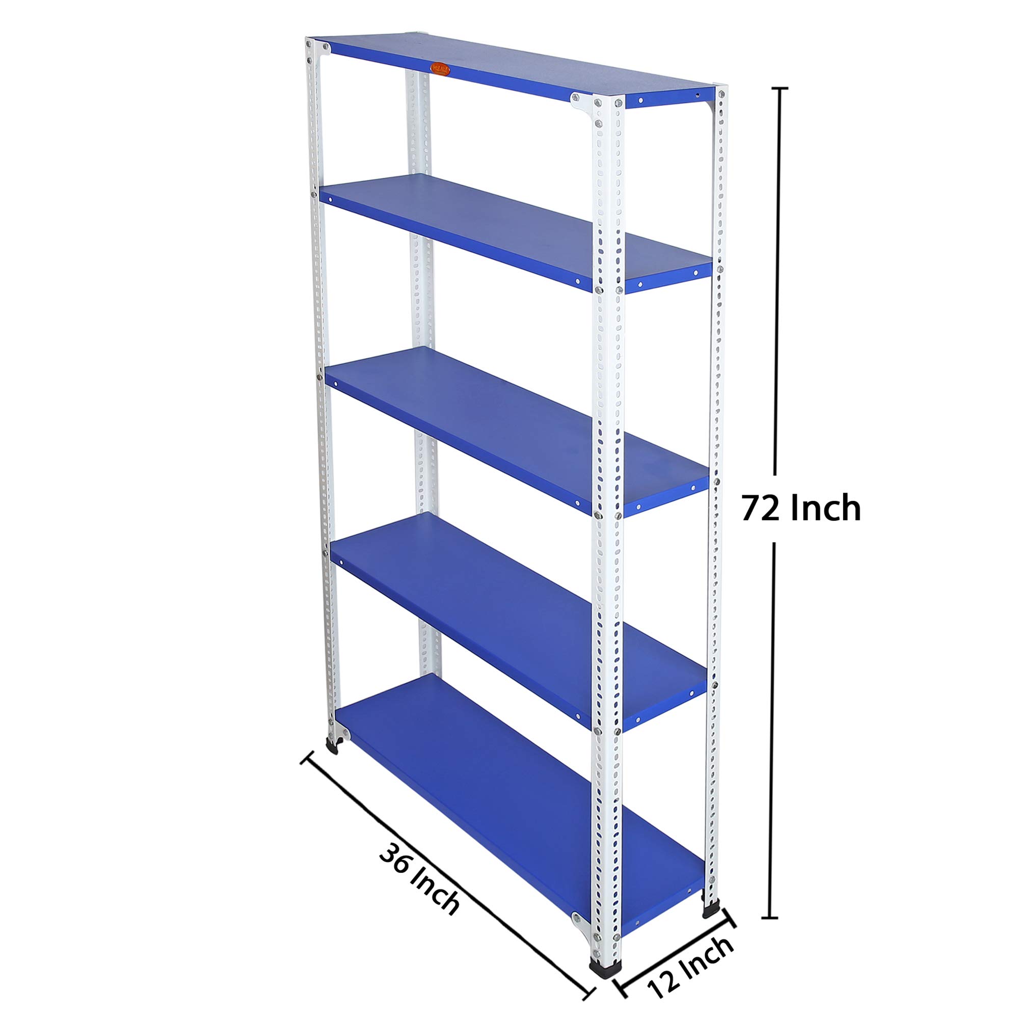 Item NameMil-Nil Glossy Finish Prime CRC Sheet 5 Shelf Multiuse Space Saving Rack-72 x 36 x 12 inch, 22 Gauge (Blue-White) 16 Gauge Angles