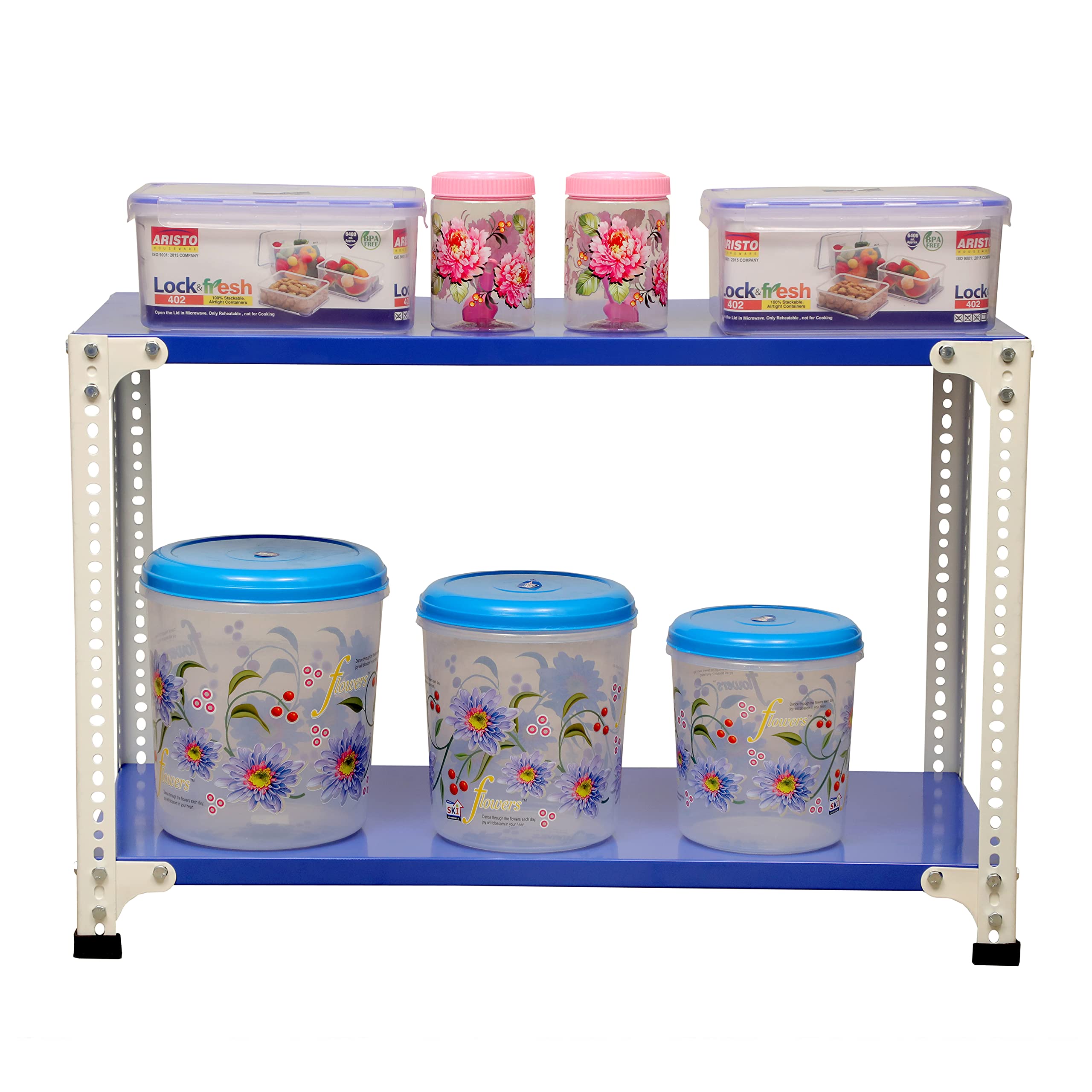 Mil-Nil Prime CRC Sheet 2 Shelf 22 Gauge Multipurpose Slotted Angle Rack | Adjustable Shelf Hight Powder Coated Rack for Home & Kitchen (24x36x15 Inch, 7.8 Kg, Blue/White) 16 Gauge Angles