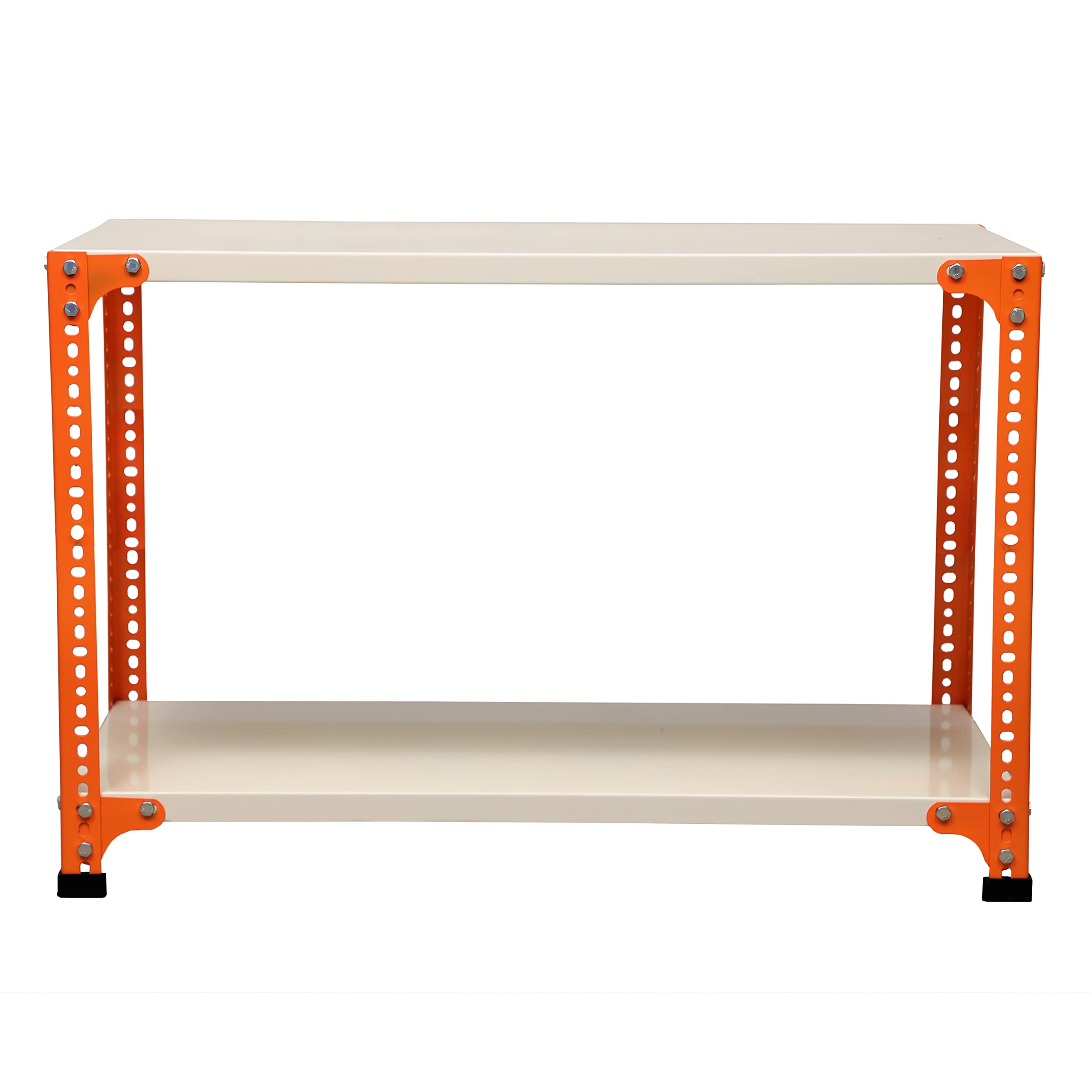 Mil-Nil Prime CRC Sheet 2 Shelf 22 Gauge Multipurpose Slotted Angle Rack | Adjustable Shelf Hight Powder Coated Rack for Home & Kitchen (24x36x15 Inch, 7.8 Kg, Orange/Ivory) 16 Gauge Angles