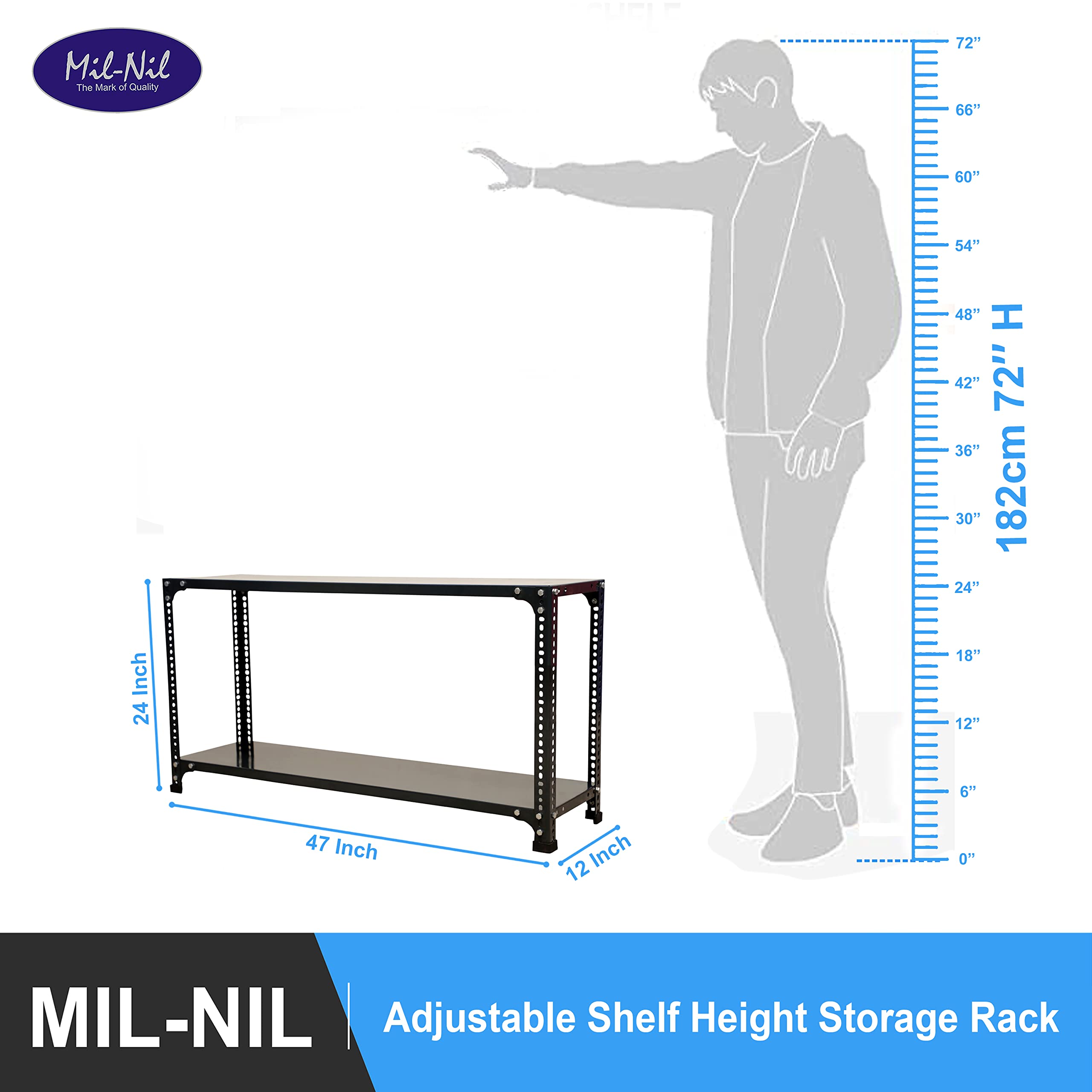 Item NameMil-Nil Prime CRC Sheet 2 Shelf 22 Gauge Multipurpose Slotted Angle Rack | Adjustable Shelf Hight Rack for Home & Kitchen (24x47x12 Inch, 8.2 Kg, Grey) 16 Gauge Angles