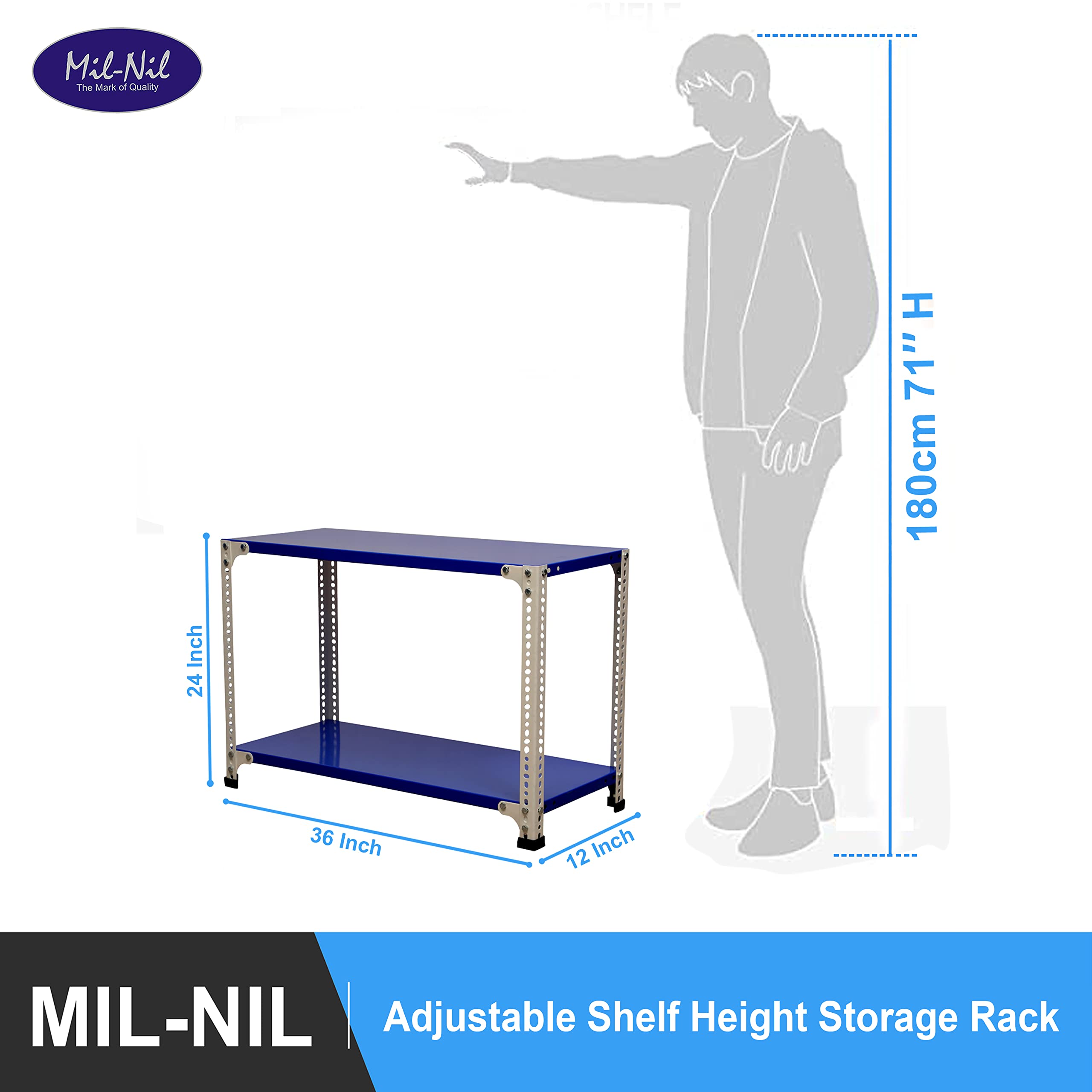 Item NameMil-Nil Prime CRC Sheet 2 Shelf 24 Gauge Multipurpose Slotted Angle Rack | Adjustable Shelf Hight Powder Coated Rack for Home & Kitchen (24x36x12 Inch, 6.4 Kg, Blue/White) 16 Gauge Angles