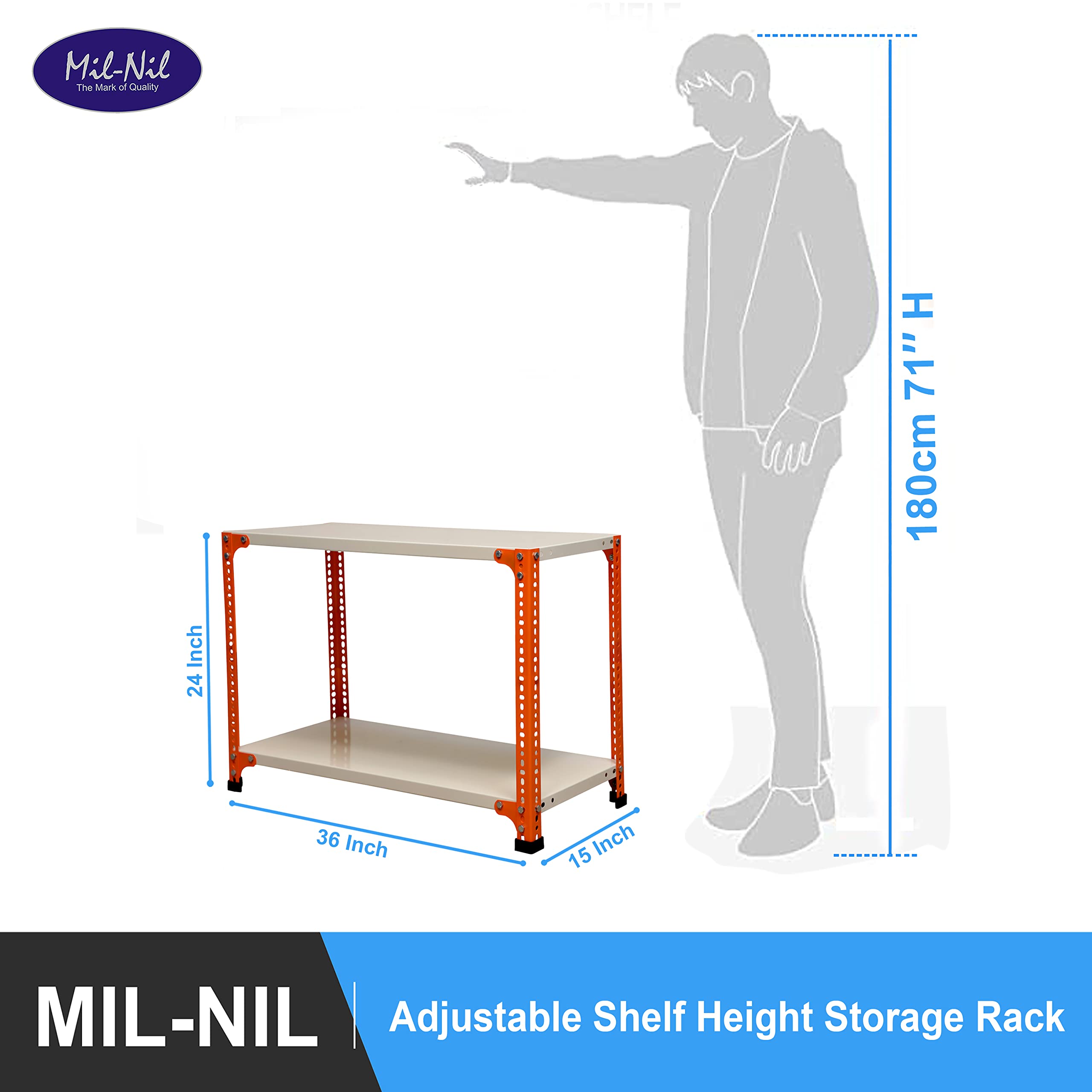 Item NameMil-Nil Prime CRC Sheet 2 Shelf 24 Gauge Multipurpose Slotted Angle Rack | Adjustable Shelf Hight Powder Coated Rack for Home & Kitchen (24x36x15 Inch, 7.2 Kg, Orange/Ivory) 16 Gauge Angles