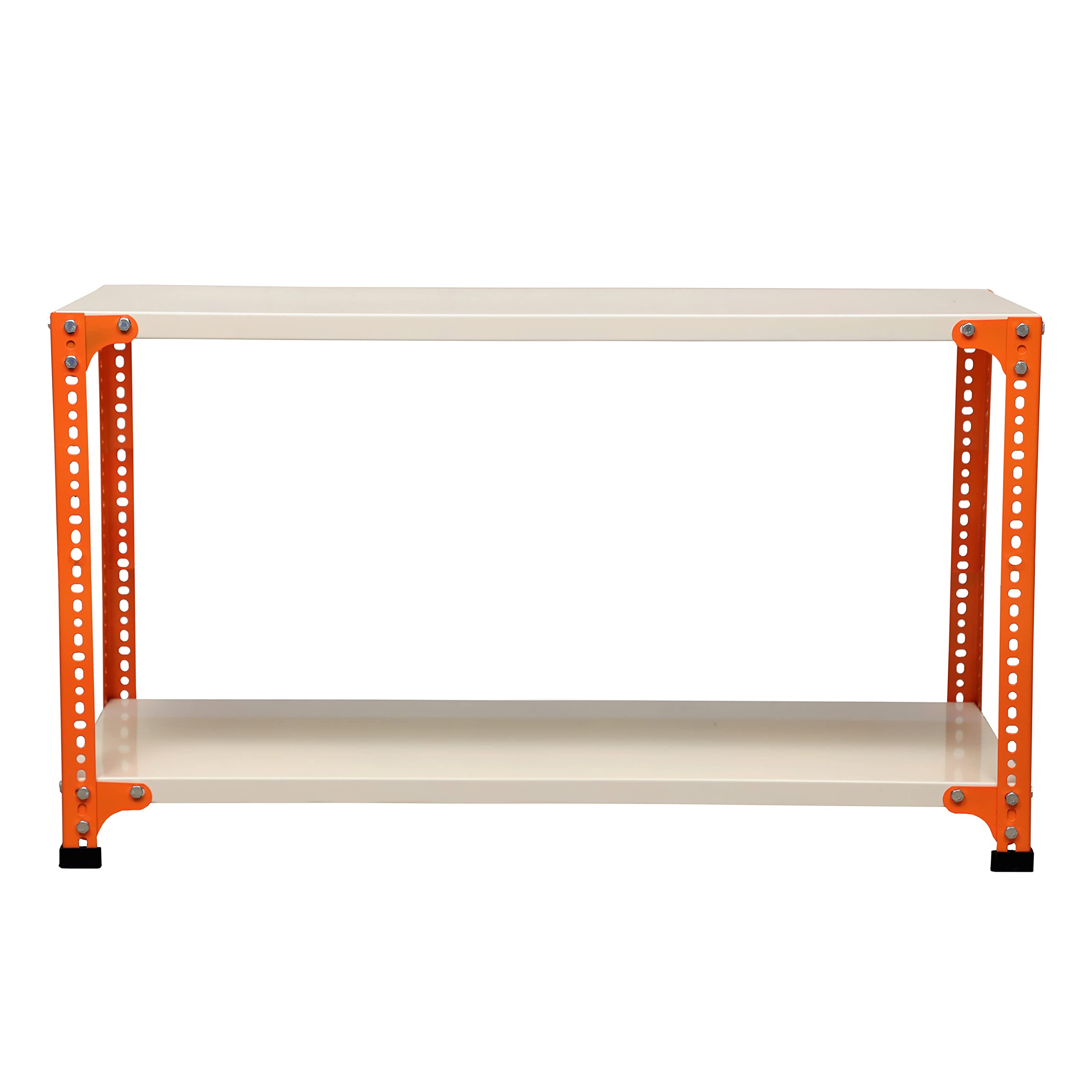 Mil-Nil Prime CRC Sheet 2 Shelf 24 Gauge Multipurpose Slotted Angle Rack | Adjustable Shelf Hight Powder Coated Rack for Home & Kitchen (24x47x12 Inch, 7.8 Kg, Orange/Ivory) 16 Gauge Angles