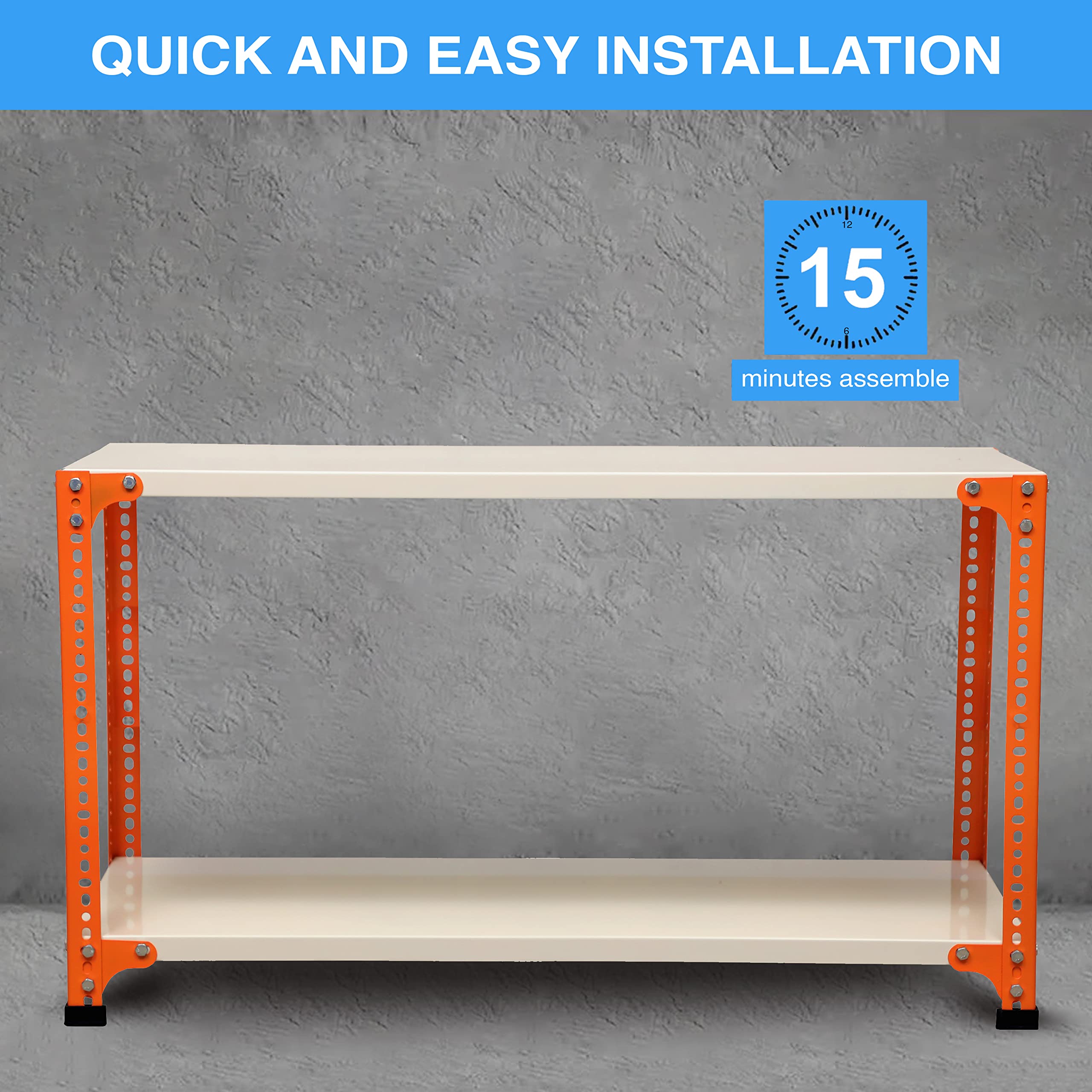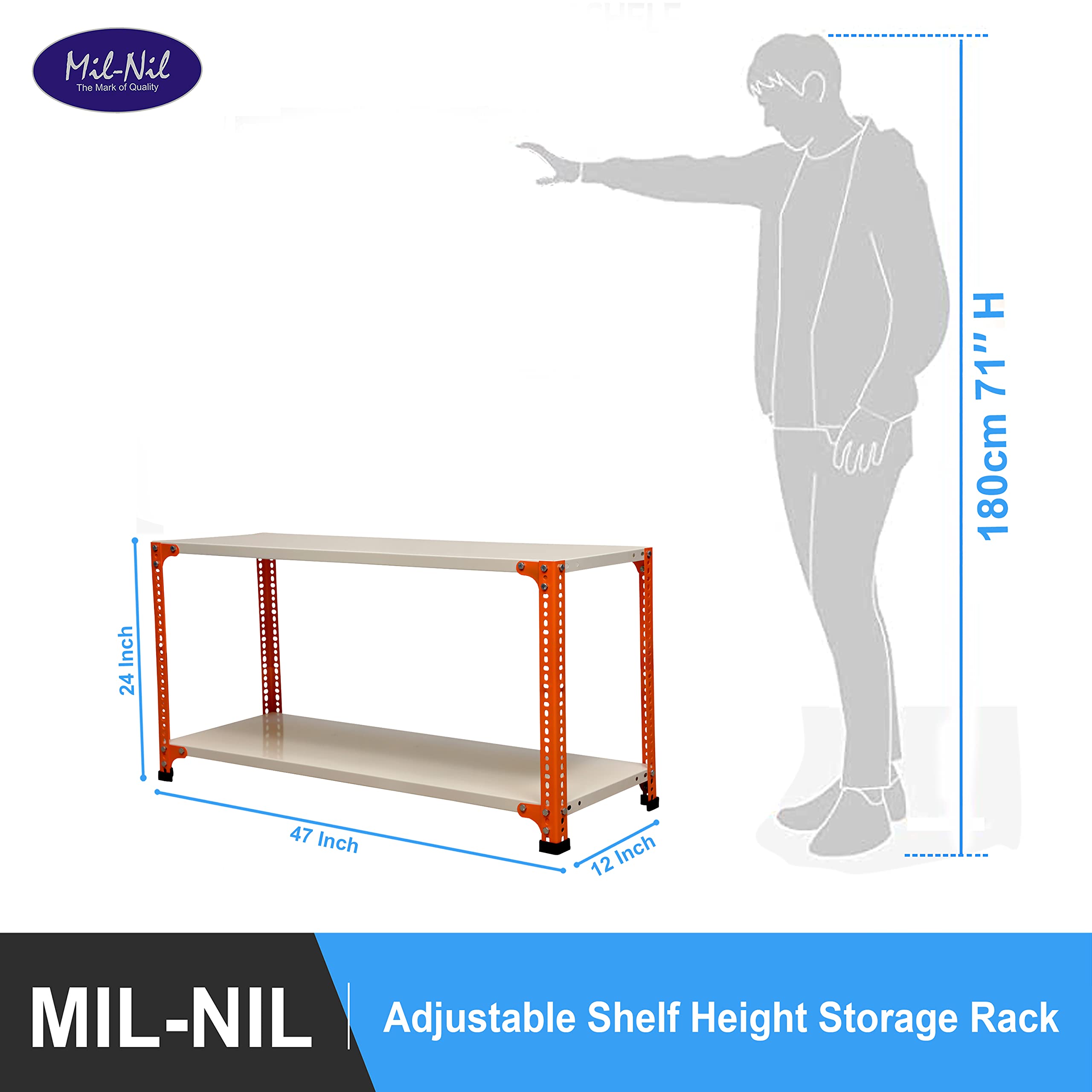 Item NameMil-Nil Prime CRC Sheet 2 Shelf 24 Gauge Multipurpose Slotted Angle Rack | Adjustable Shelf Hight Powder Coated Rack for Home & Kitchen (24x47x12 Inch, 7.8 Kg, Orange/Ivory) 16 Gauge Angles