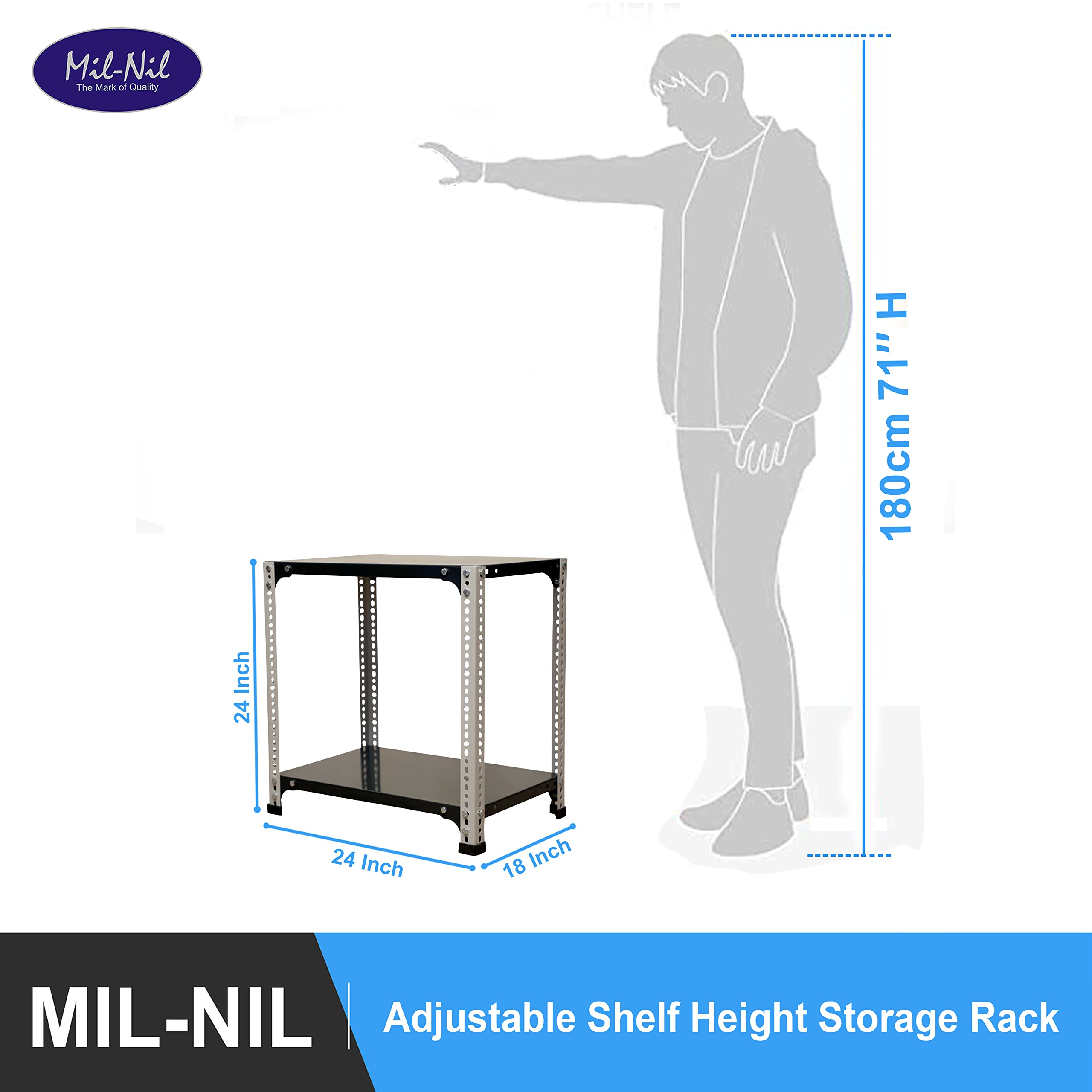 Item NameMil-Nil Prime CRC Sheet 2 Shelf 24 Gauge Multipurpose Slotted Angle Rack | Adjustable Shelf Hight Rack for Home & Kitchen (24x24x18 Inch, 6.2 Kg, Grey/Havels) 16 Gauge Angles