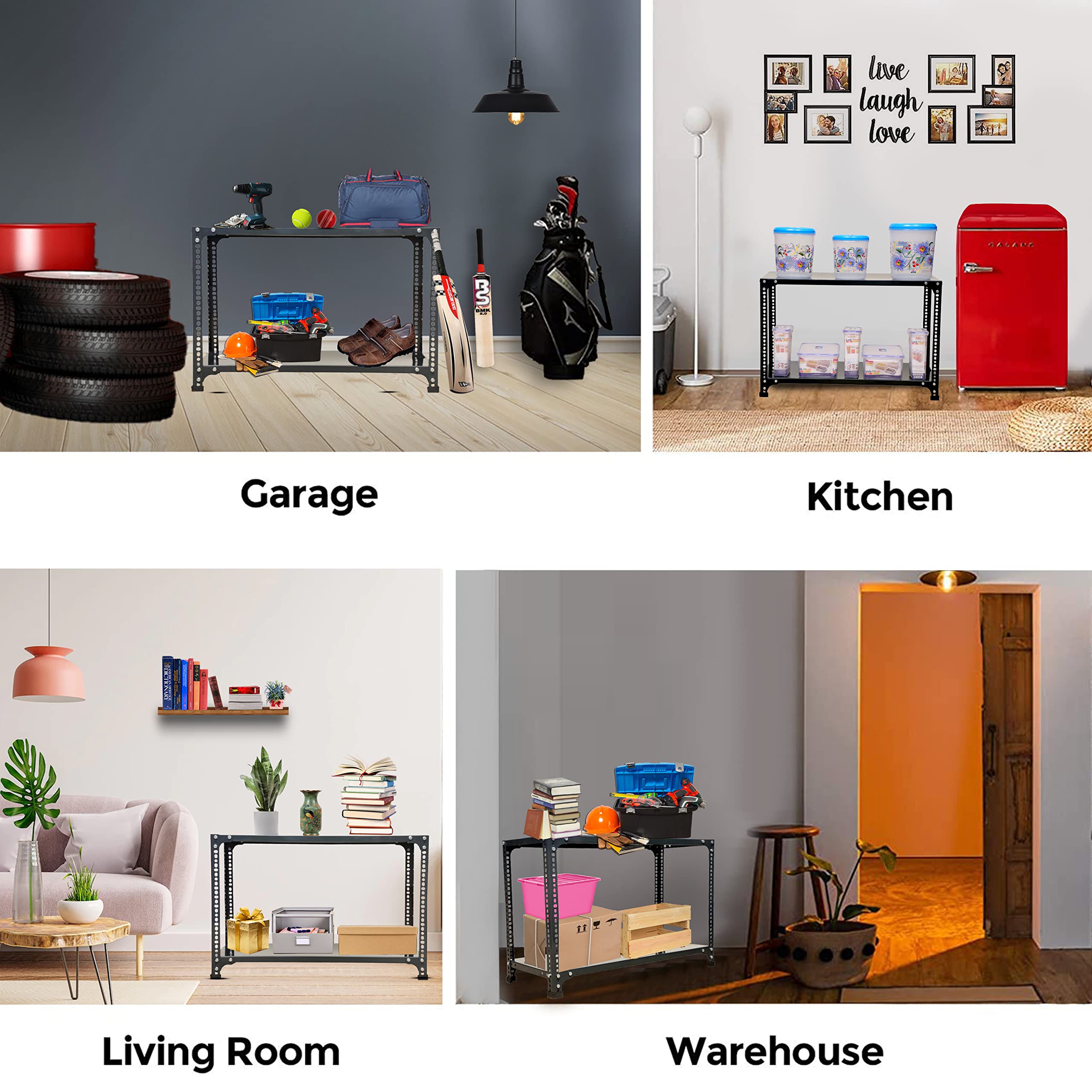 Bullet Point 4✔ MATERIAL: PRIME CRC SHEET, Iron Slotted Angle, Free Protective Rubber Feet. Usage: It's a Multipurpose Storage rack that can be used as a kitchen rack, book rack, cloth rack, office rack, living room rack, Industries rack, etc.