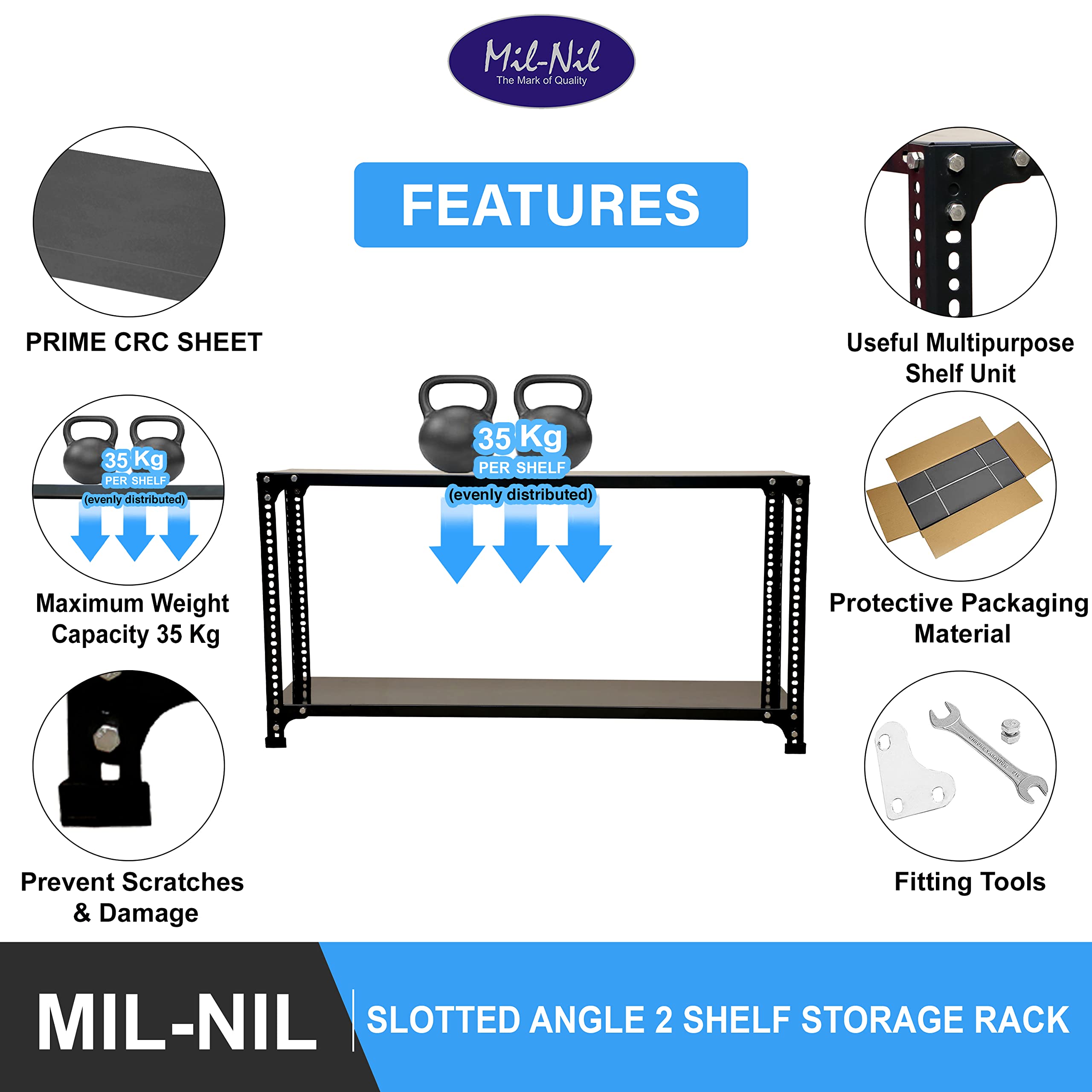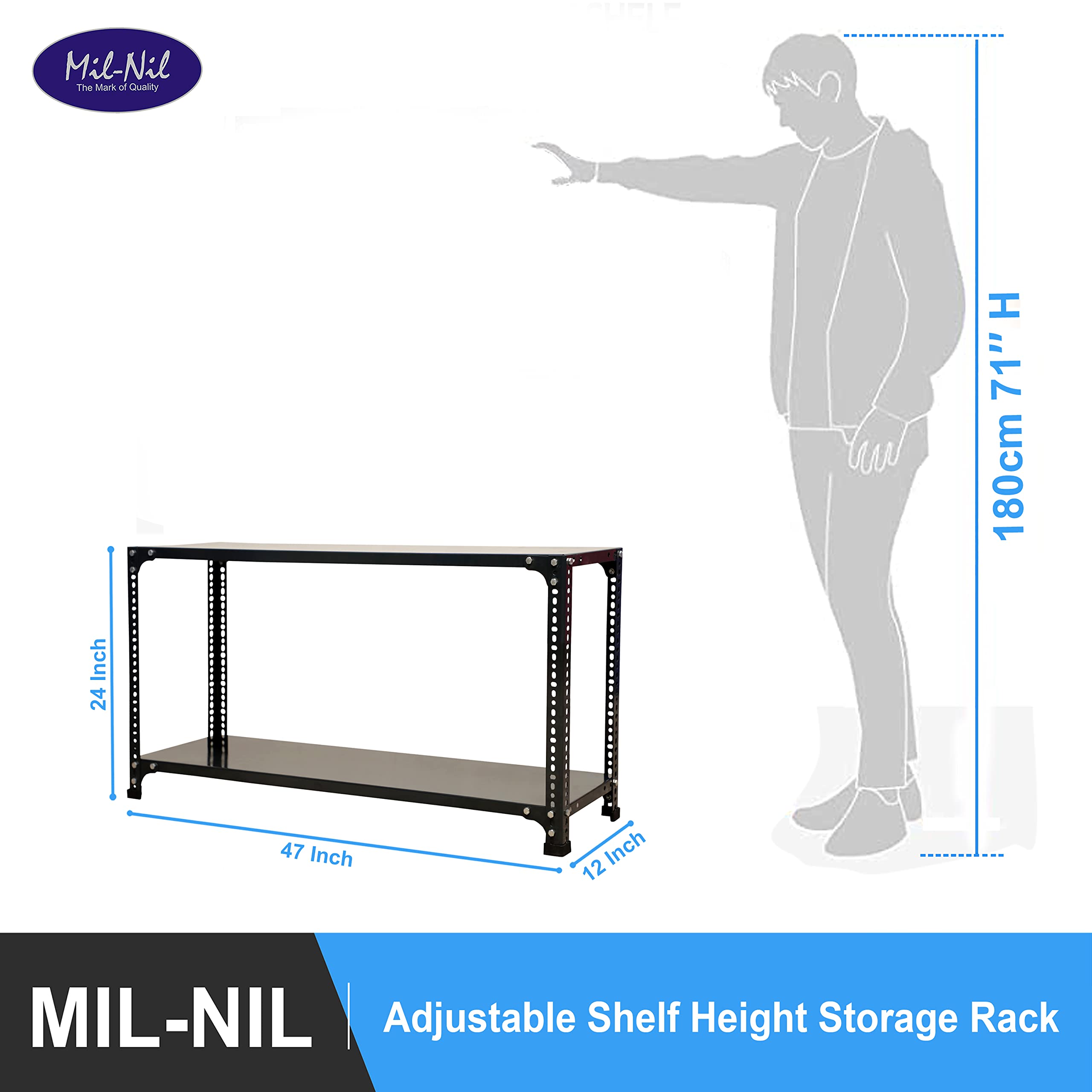 Item NameMil-Nil Prime CRC Sheet 2 Shelf 24 Gauge Multipurpose Slotted Angle Rack | Adjustable Shelf Hight Rack for Home & Kitchen (24x47x12 Inch, 7.8 Kg, Grey) 16 Gauge Angles