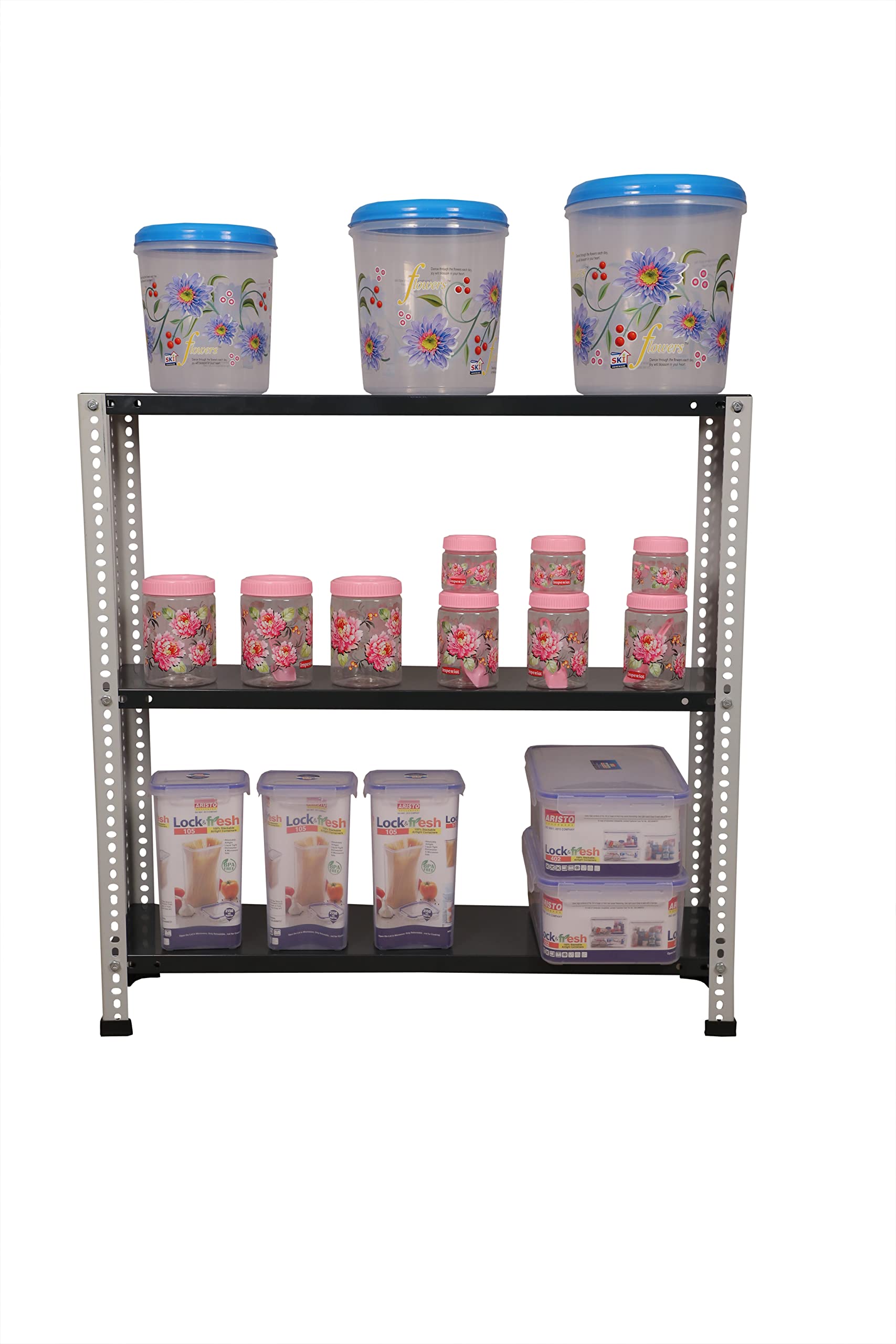 Item NameMil-Nil Prime CRC Sheet 24 Gauge Multipurpose Storage Rack with 3 Standing Shelf Units for Home & Kitchen, Office & Industry - (36X36X9 in, 8.4 Kg | Light Grey)