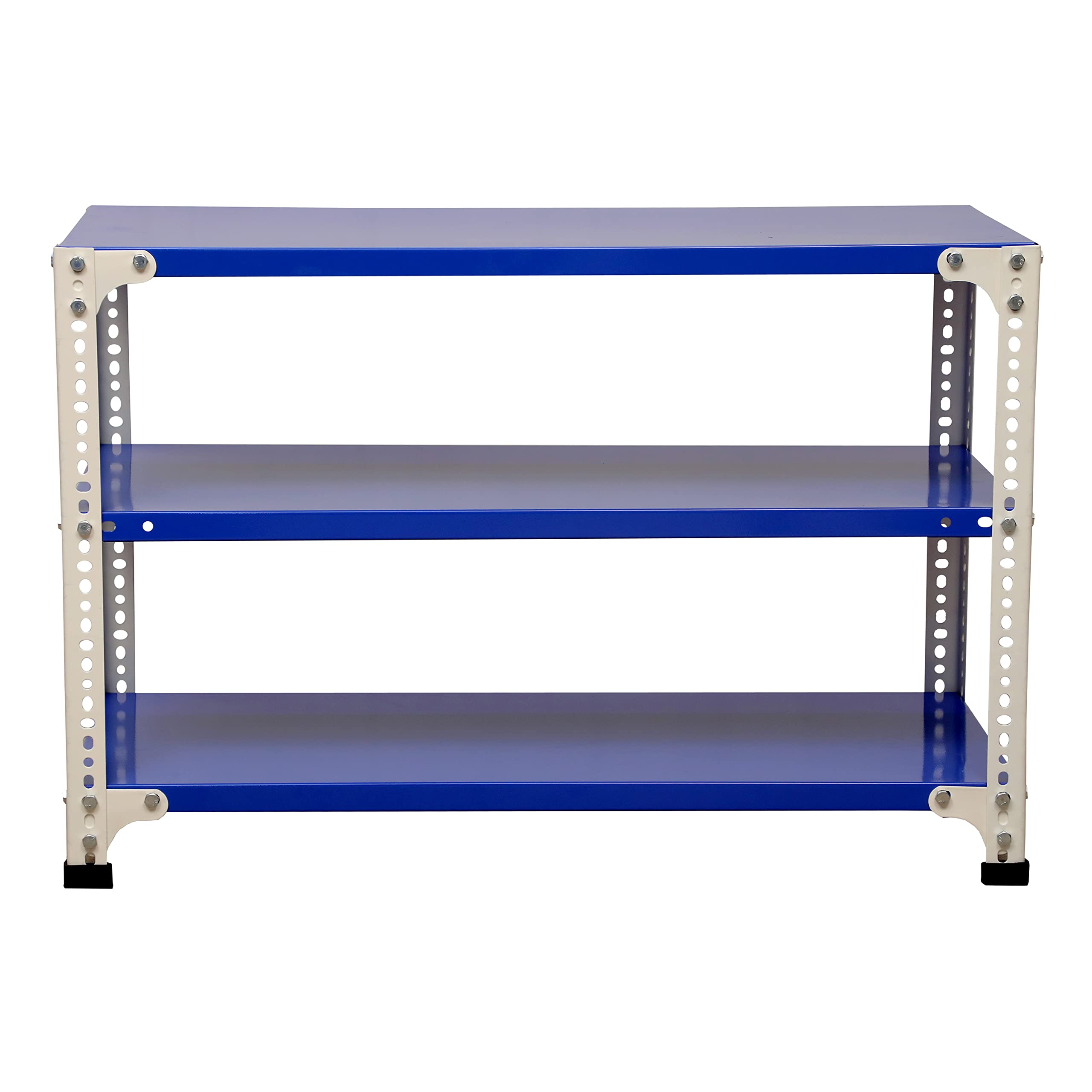 Mil-Nil Prime CRC Sheet 3 Shelf 22 Gauge Multipurpose Slotted Angle Rack | Adjustable Shelf Hight Powder Coated Rack for Home & Kitchen (24x36x15 Inch, 10.2 Kg, Blue/White) 16 Gauge Angles