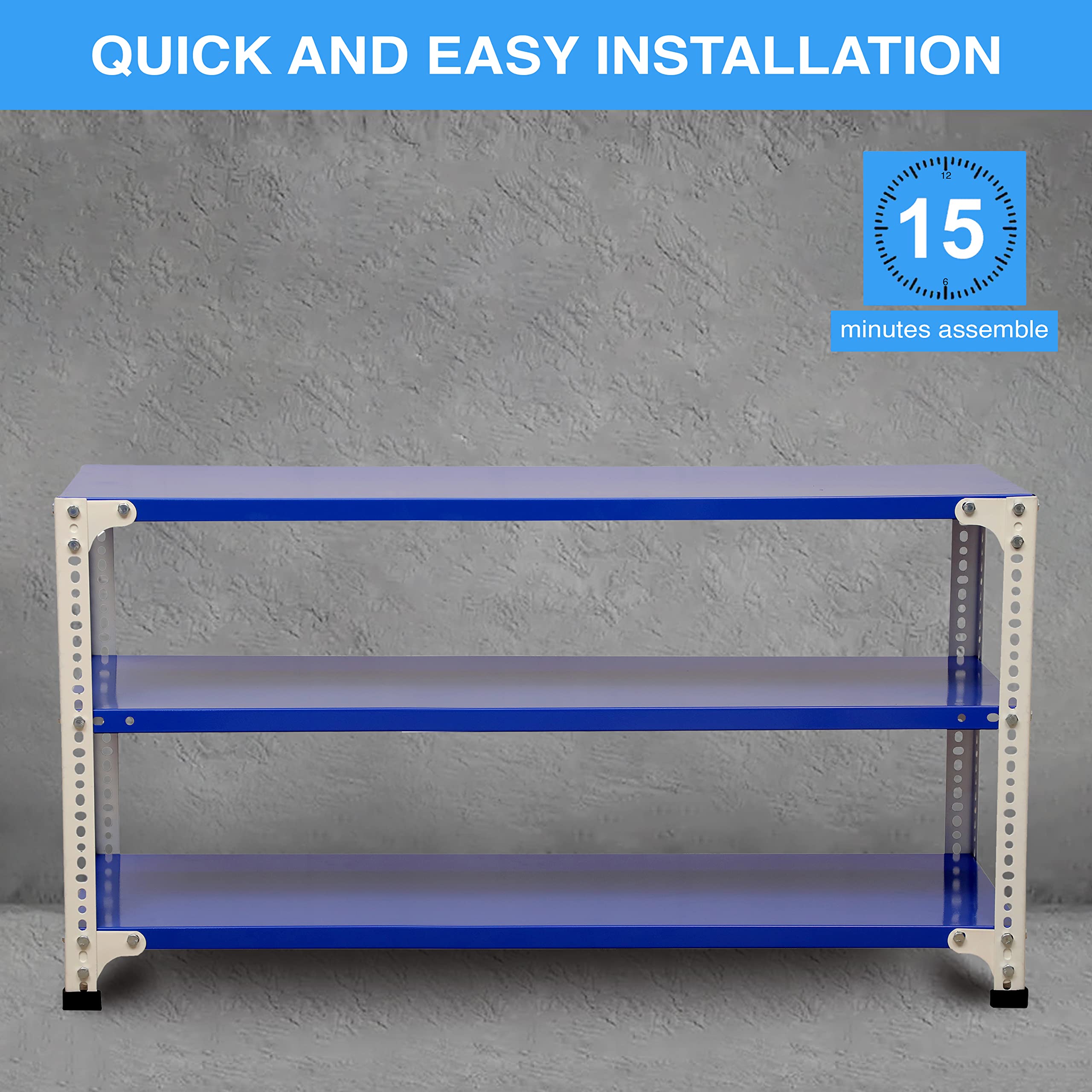 Mil-Nil Prime CRC Sheet 3 Shelf 22 Gauge Multipurpose Slotted Angle Rack | Adjustable Shelf Hight Powder Coated Rack for Home & Kitchen (24x47x12 Inch Blue/White) 16 Gauge Angles