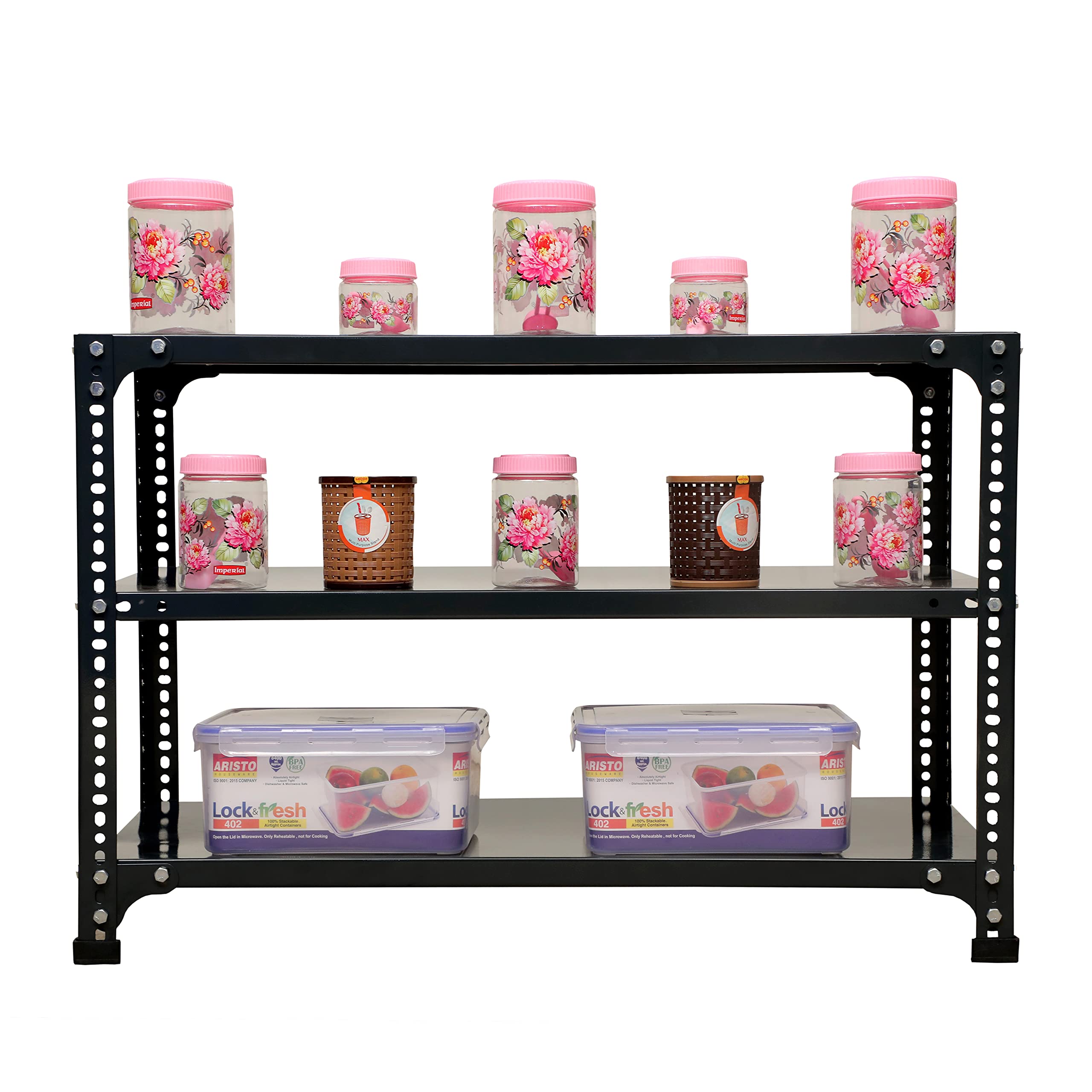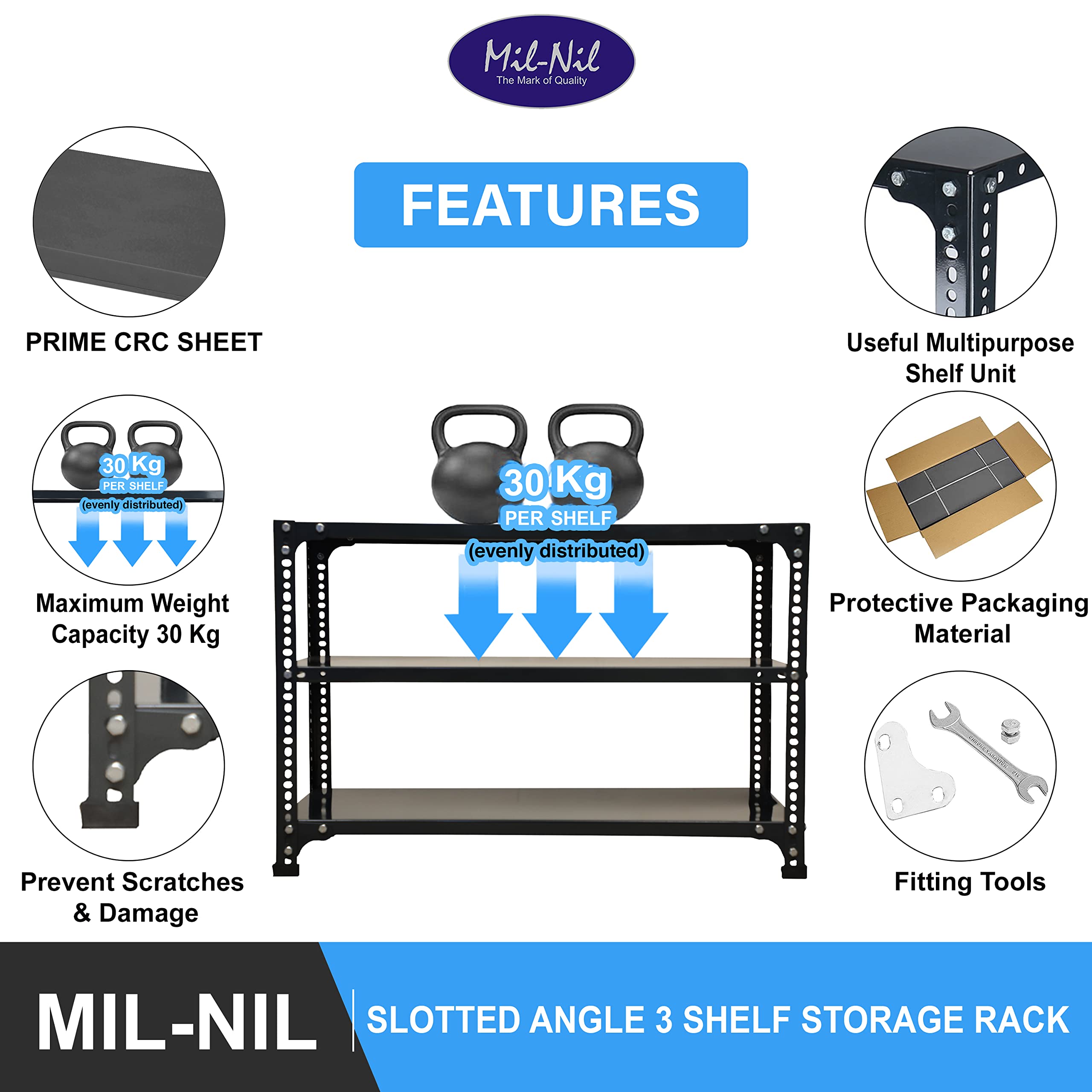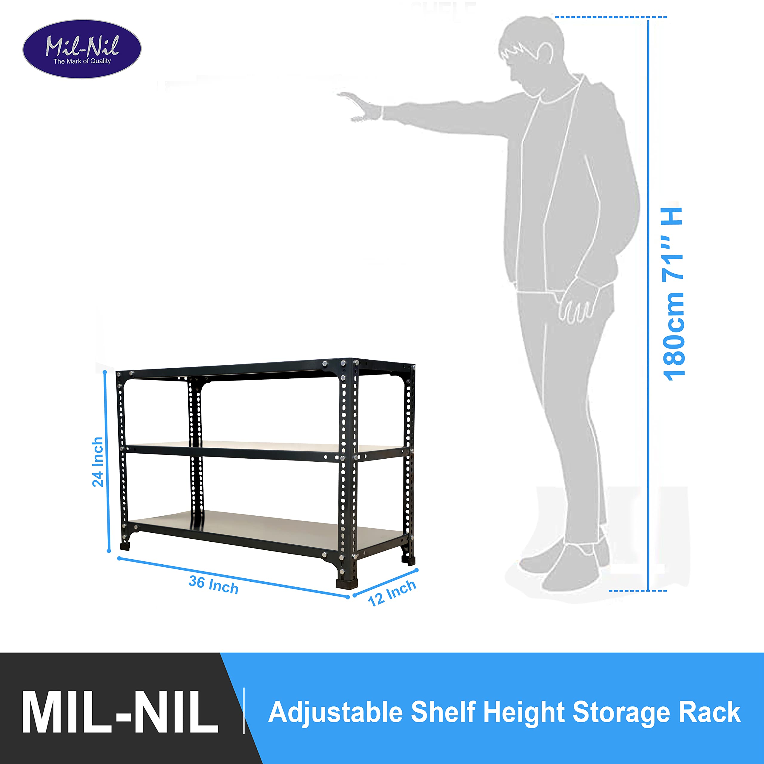 Item NameMil-Nil Prime CRC Sheet 3 Shelf 24 Gauge Multipurpose Slotted Angle Rack | Adjustable Shelf Hight for Home & Kitchen 18 Gauge Angle (24X36X12 inches, 7.7 Kg, Grey)