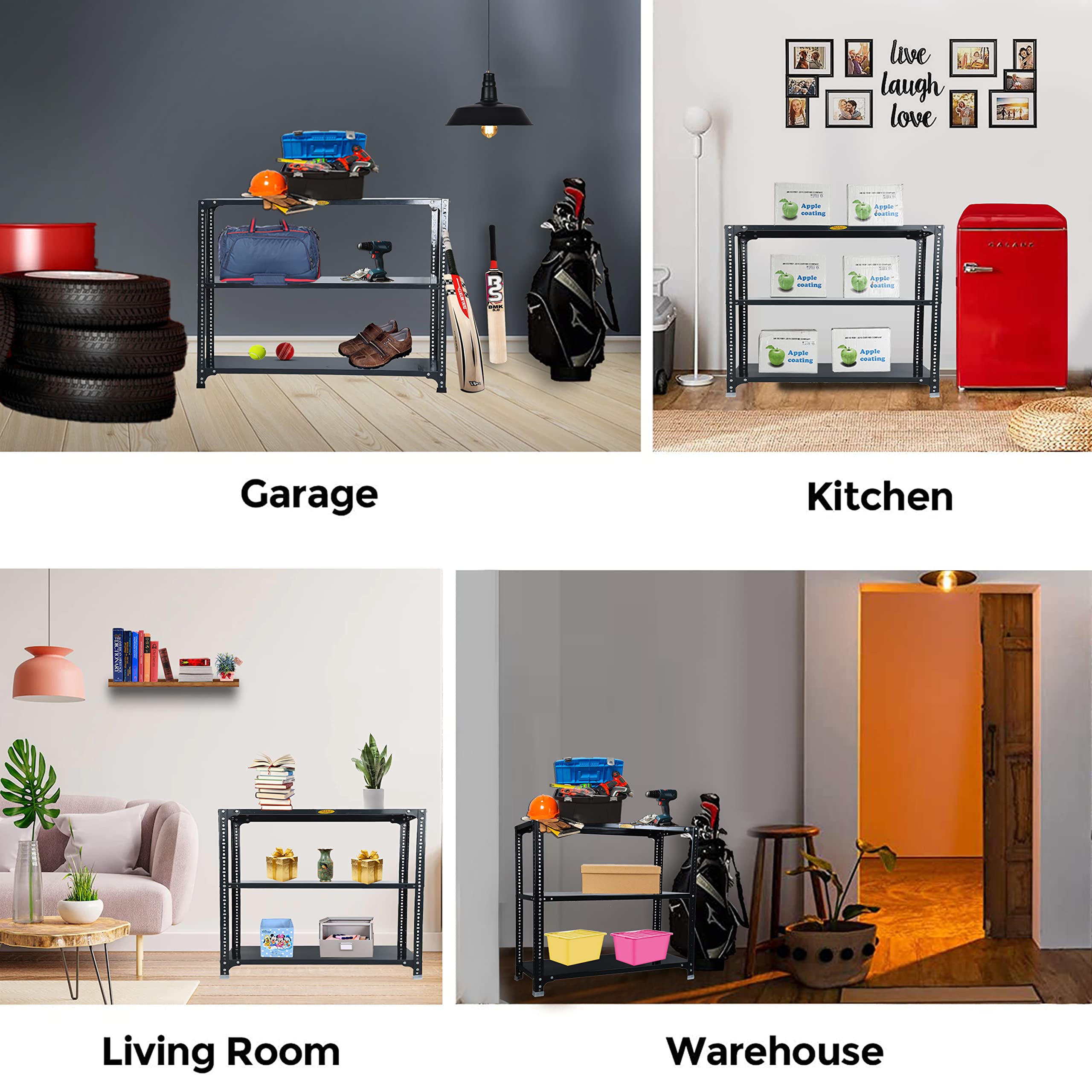 Bullet Point 4✔​​​​​​​ MATERIAL - PRIME CRC SHEET, Iron Slotted Angle, Free Protective Rubber Feet. Usage: It's a Multipurpose Storage rack that can be used as a kitchen rack, book rack, cloth rack, office rack, living room rack, Industries rack, etc.