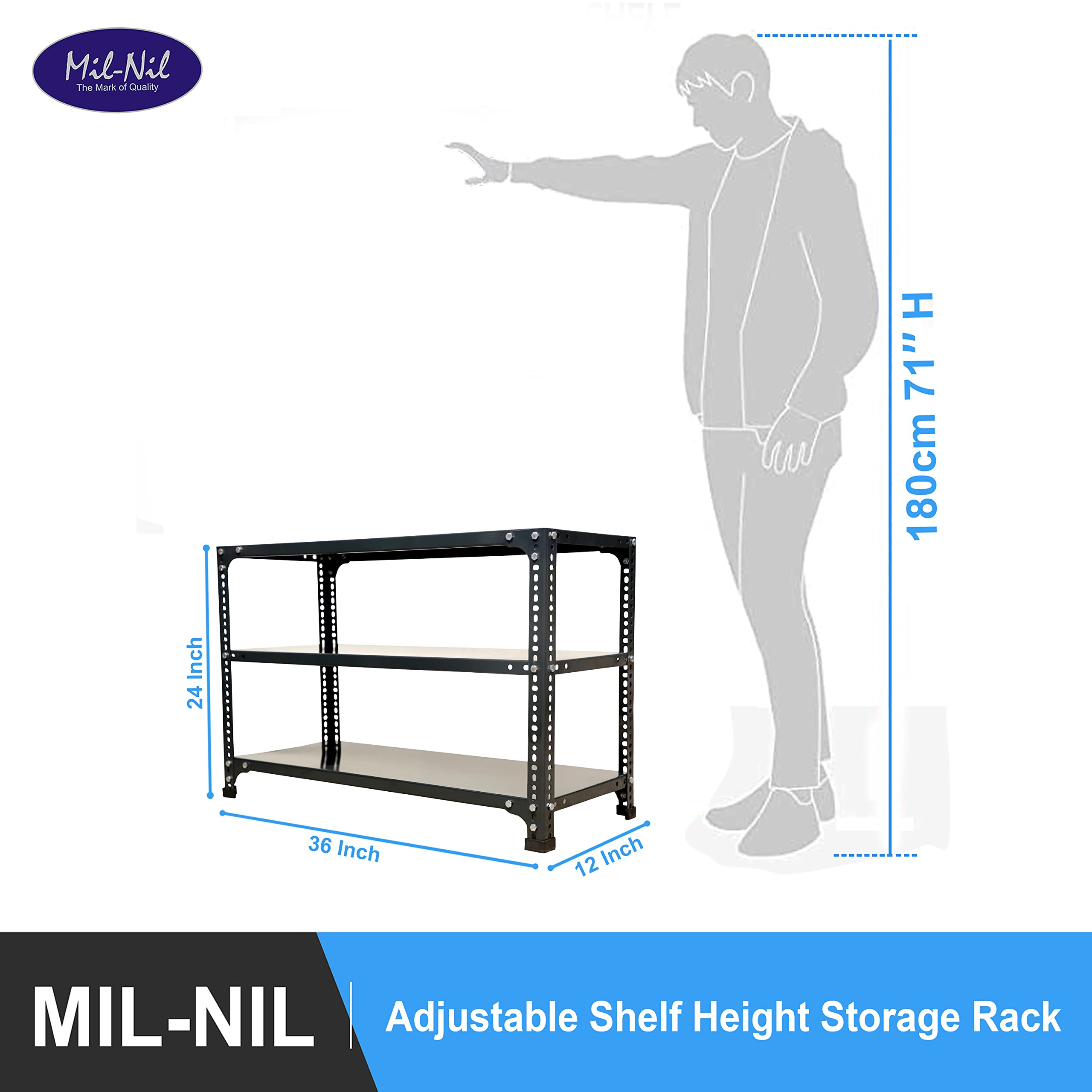 Item NameMil-Nil PRIME CRC SHEET 3 Shelf 24 Gauge Multipurpose Slotted Angle Rack | Adjustable Shelf Hight Rack for Home & Kitchen (24x36x12 Inch, 8.1 Kg, Grey) 16 Gauge Angles