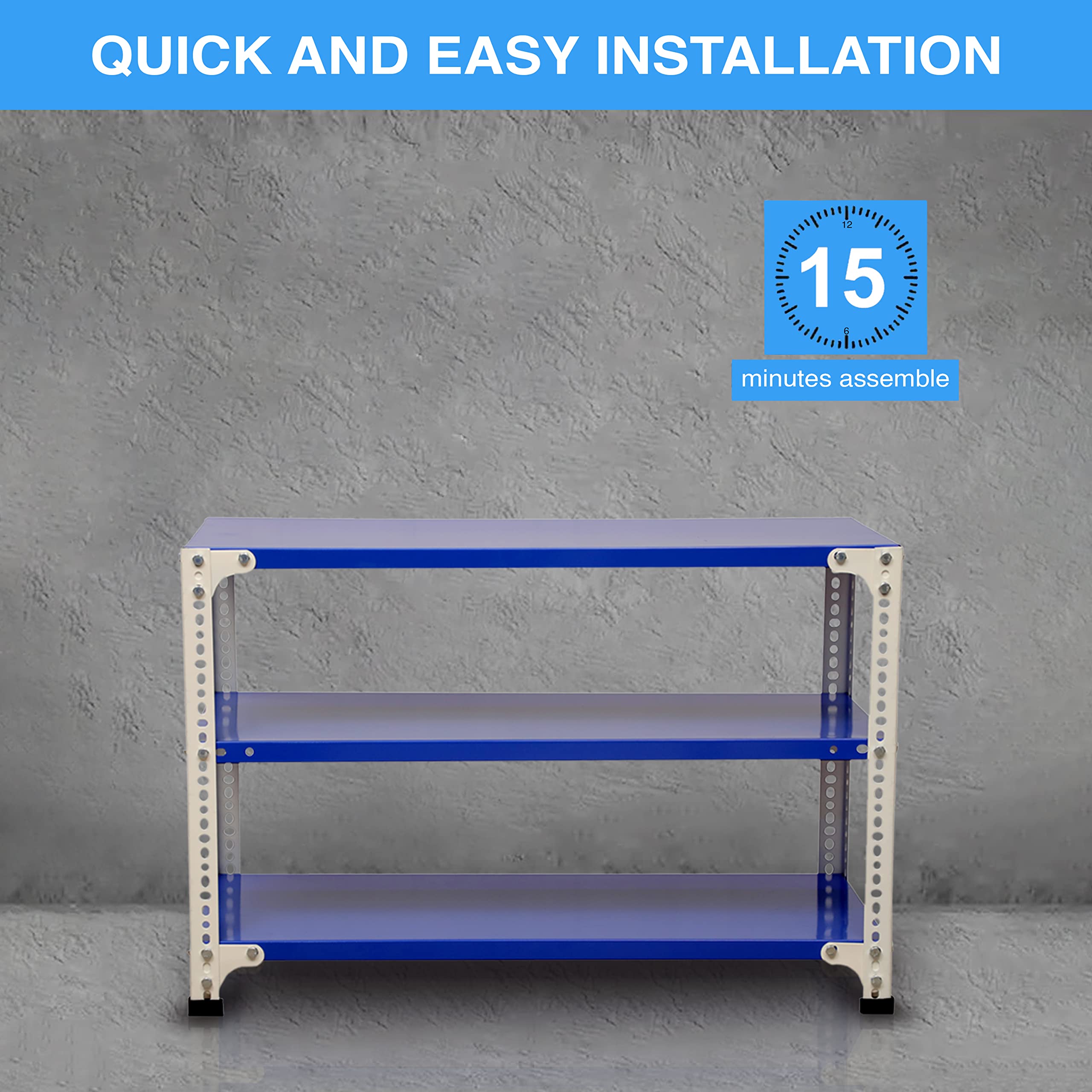 Mil-Nil PRIME CRC SHEET 3 Shelf 24 Gauge Multipurpose Slotted Angle Rack | Adjustable Shelf Hight Rack for Home & Kitchen (24x36x18 Inch, 10.2 Kg, Blue/Whie) 16 Gauge Angles