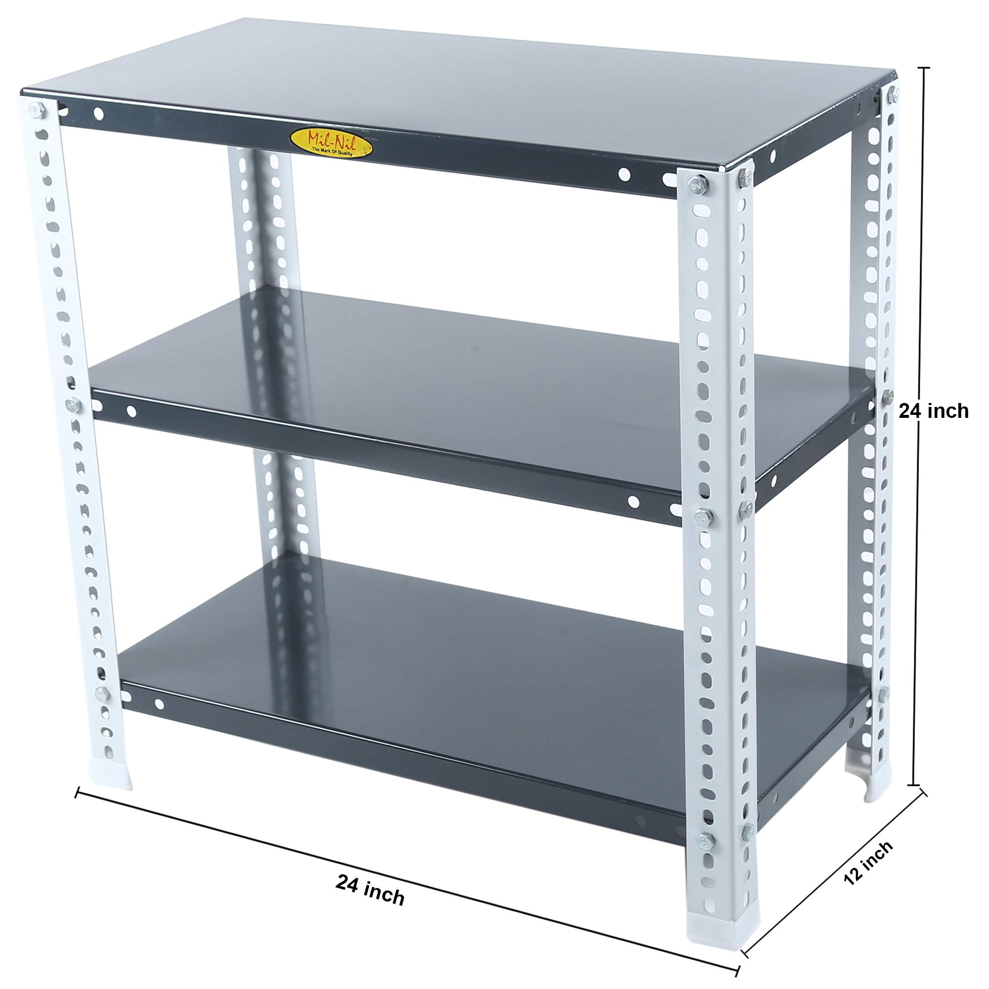 Item NameMil-Nil Prime CRC Sheet 3 Shelf Multipurpose Slotted Angle Rack, 24 x 24 x 12 Inch, 24 Gauge [Grey/Havels(Powder Coating)] 16 Gauge Angles