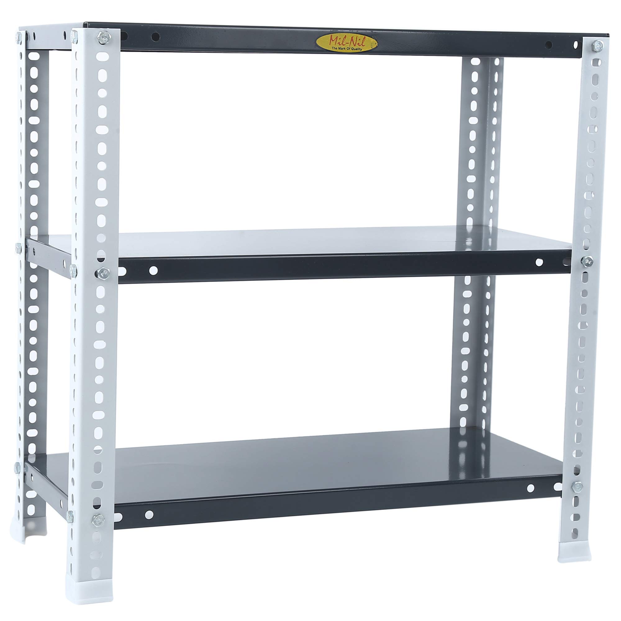 Mil-Nil Prime CRC Sheet 3 Shelf Multipurpose Slotted Angle Rack, 24 x 24 x 12 Inch, 24 Gauge [Grey/Havels(Powder Coating)] 16 Gauge Angles