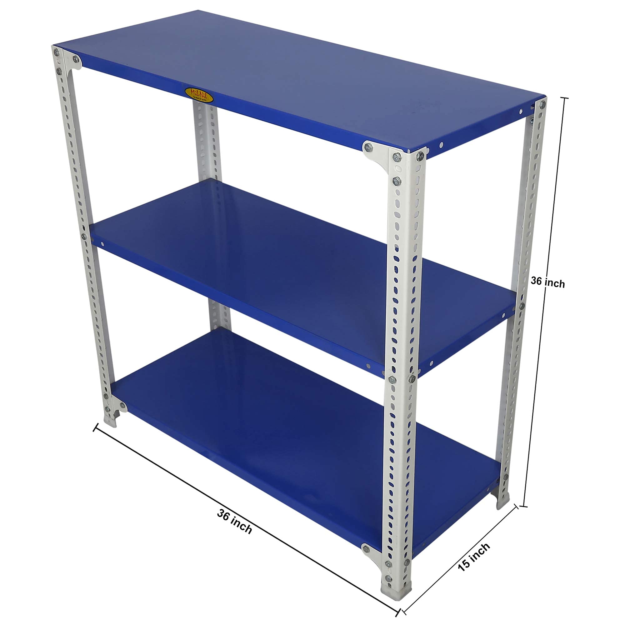 Item NameMil-Nil Prime CRC Sheet 3 Shelf Multipurpose Slotted Angle Rack, 36 x 36 x 15 Inch, 22 Gauge [(Blue-White) Powder Coating] 16 Gauge Angles