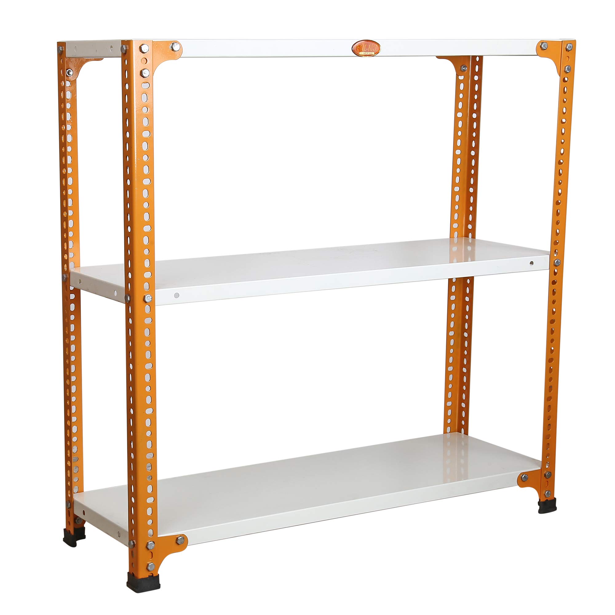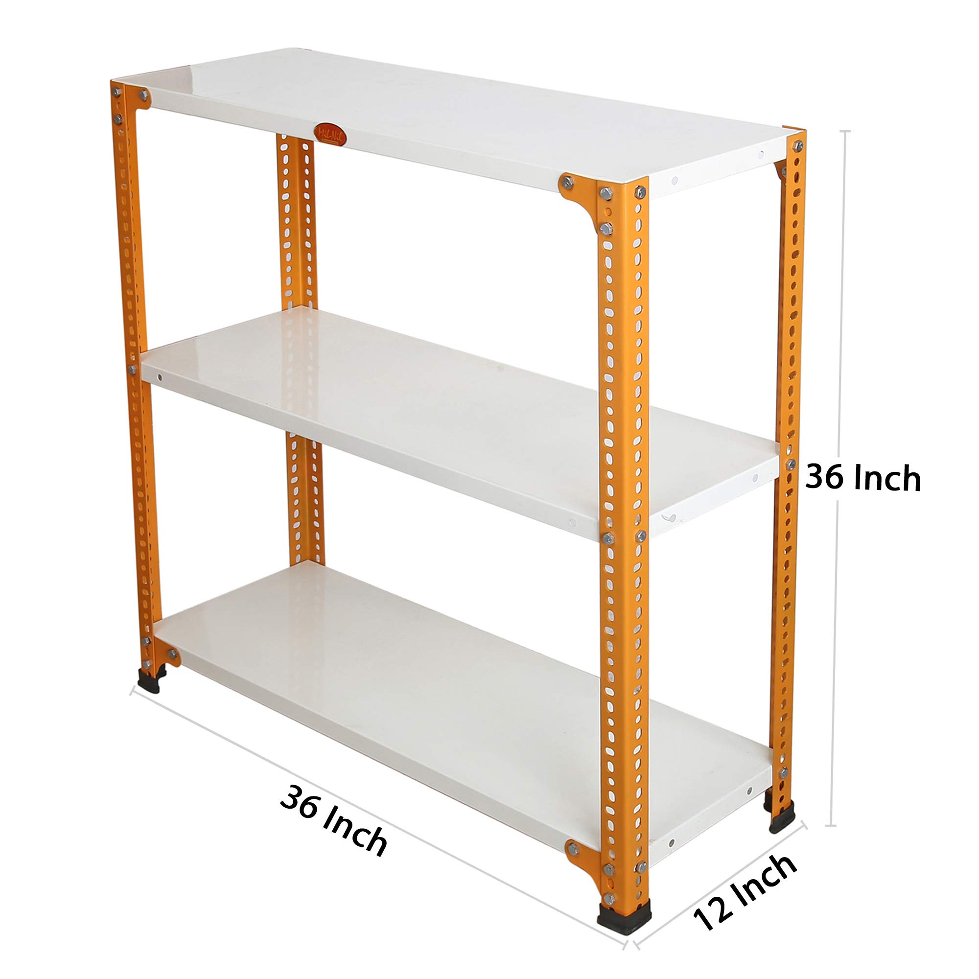 Item NameMil-Nil Prime CRC Sheet 3 Shelf Multiuse Storage Unit, 36 x 36 x 12 Inch, 20 Gauge (Ivory-Orange) Powder Coated 14 Gauge Angles