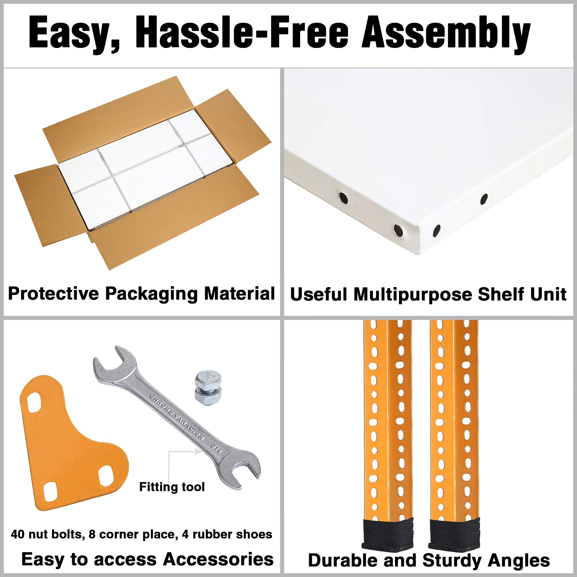 Bullet Point 3With durable quality and multiple sizes, It's a multipurpose rack which can be used as Industries racks, bath racks, book racks, kitchen racks and cloth racks etc. Its very useful for warehouse and store room purpose.