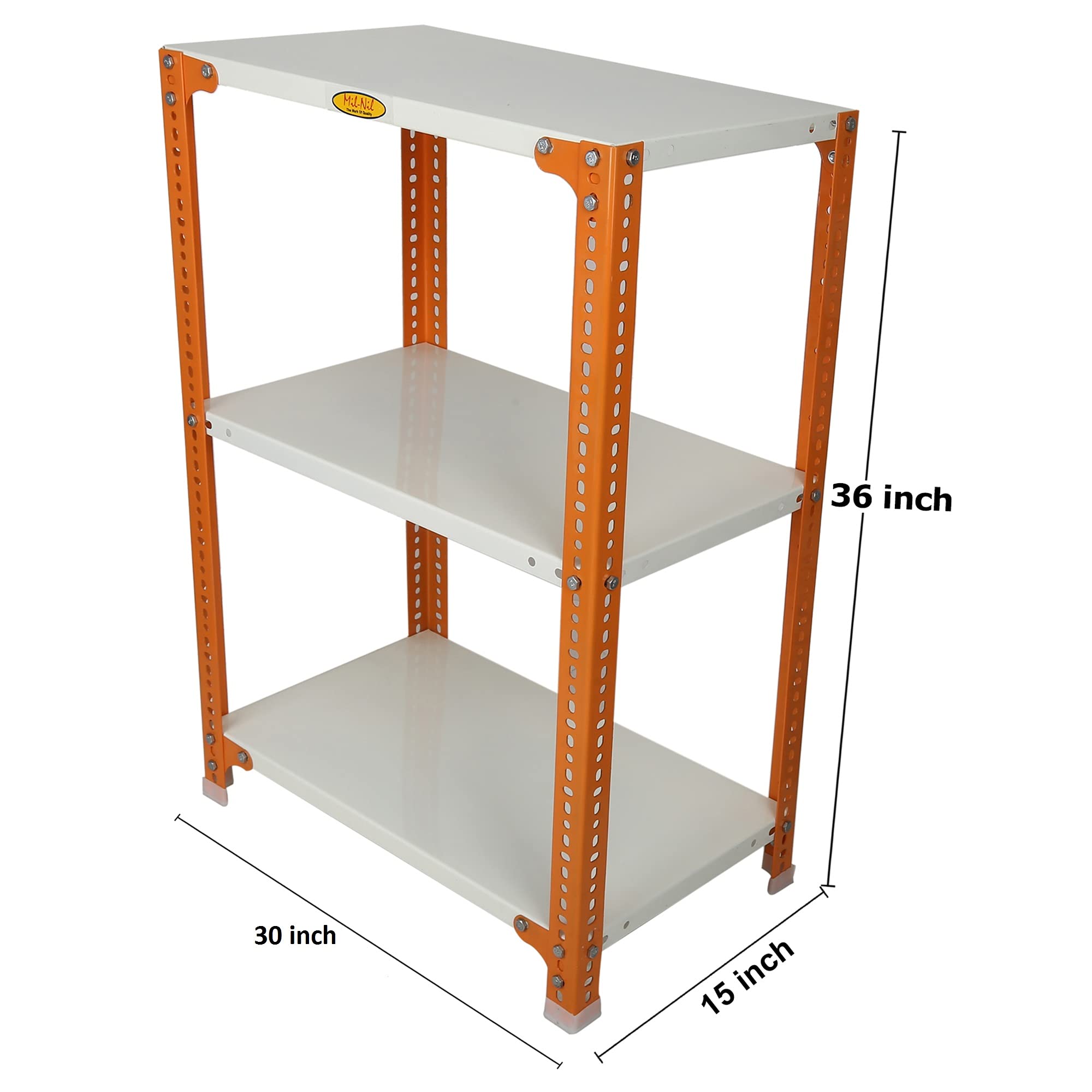 Item NameMil-Nil Prime CRC Sheet 36x30x15 Inch Multipurpose Storage, Adjustable Shelf, Slotted Angle Rack with 3 Shelves 22 Gauge_Orange/Ivory 16 Gauge Angles