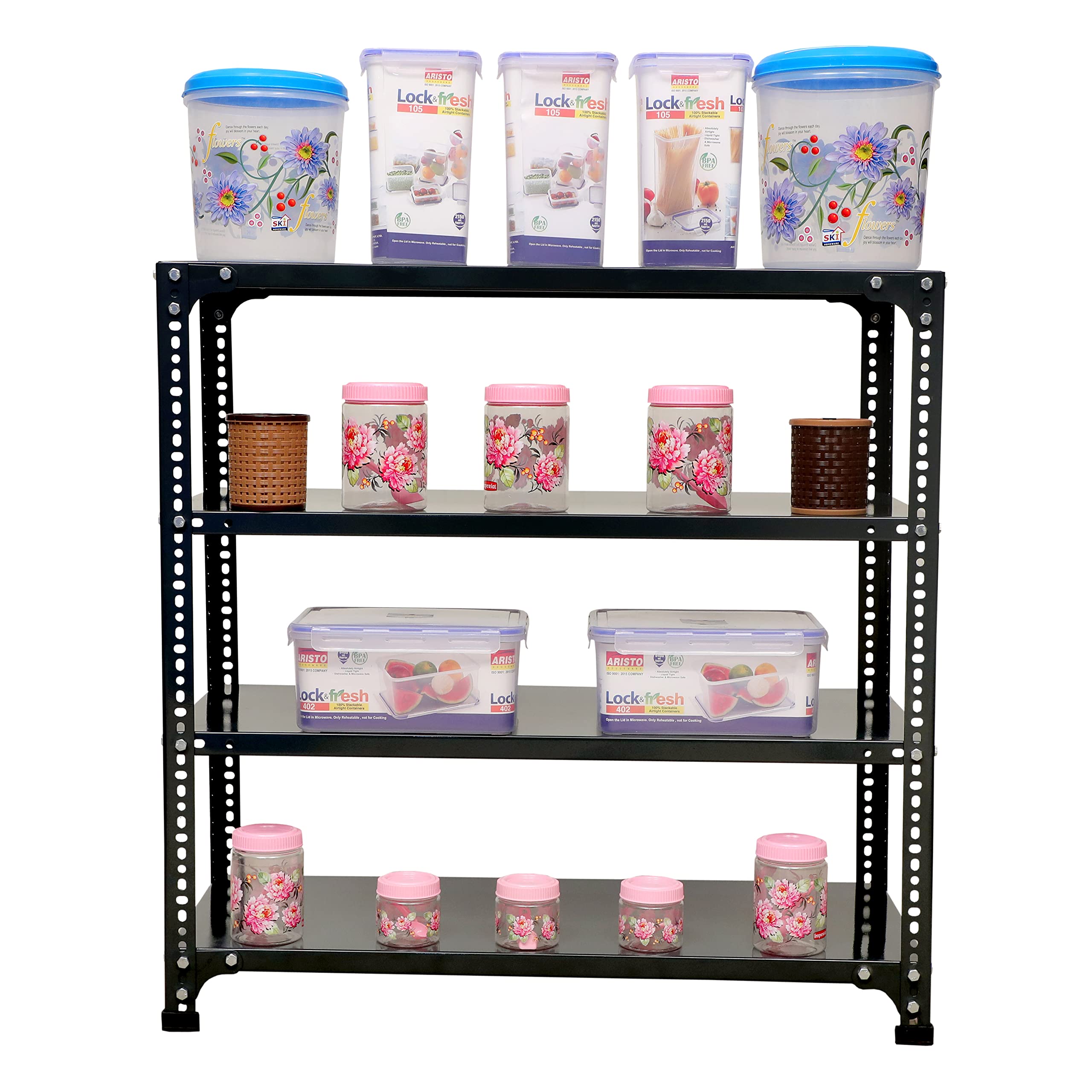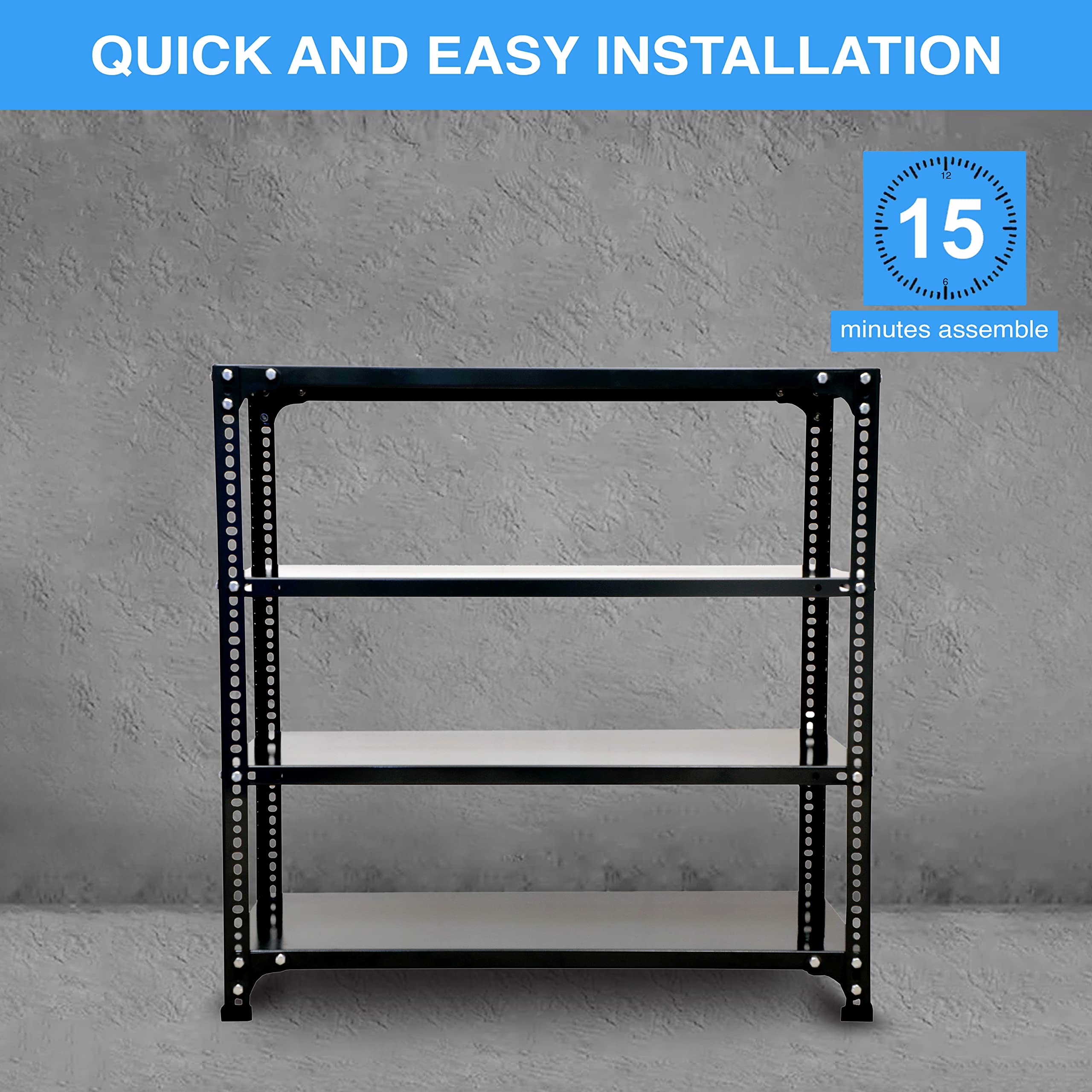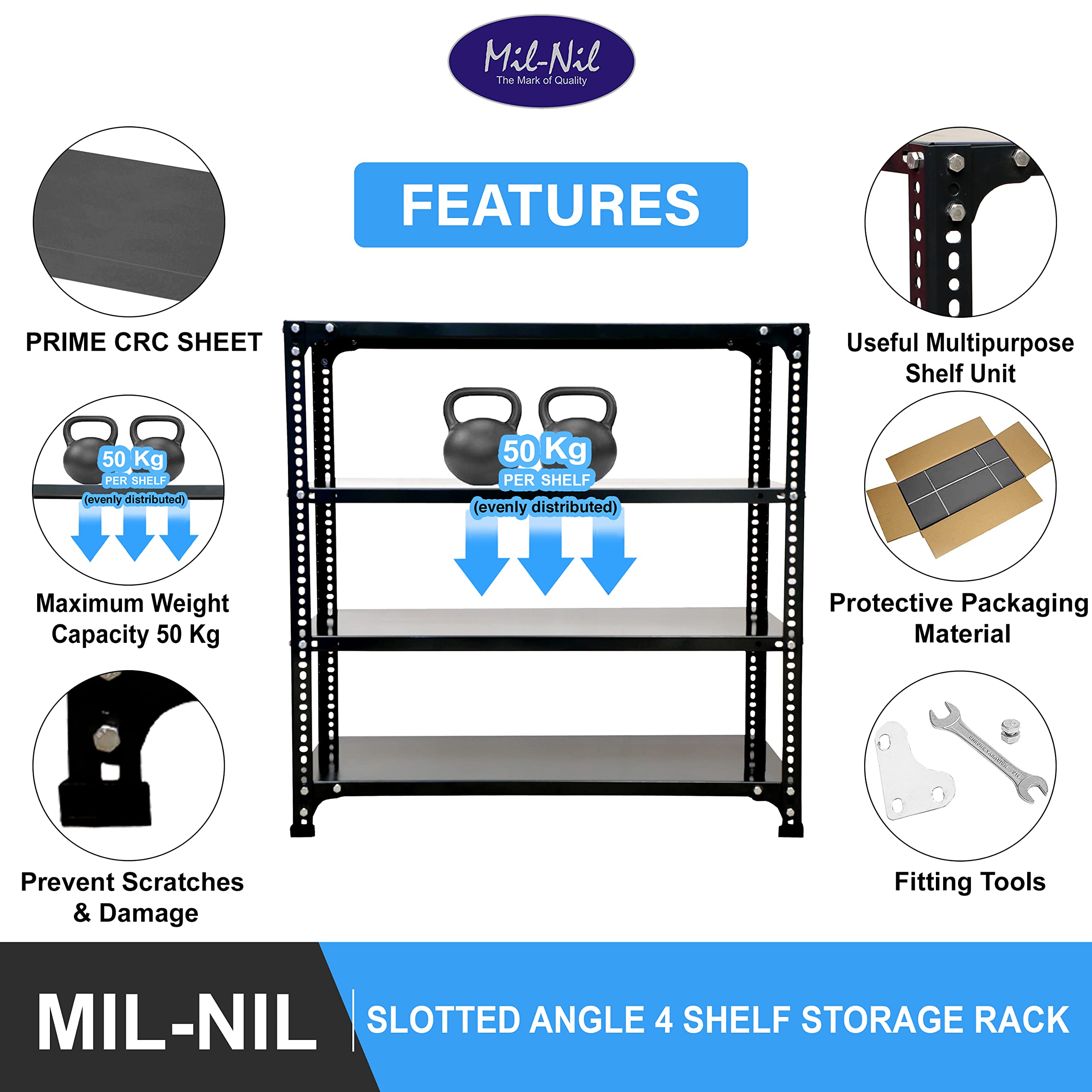 Mil-Nil Prime CRC Sheet 4 Shelf 22 Gauge Multipurpose Slotted Angle Rack | Adjustable Shelf Hight Rack for Home & Kitchen (36x36x15 Inch, 14.4 Kg, Grey) 16 Gauge Angles