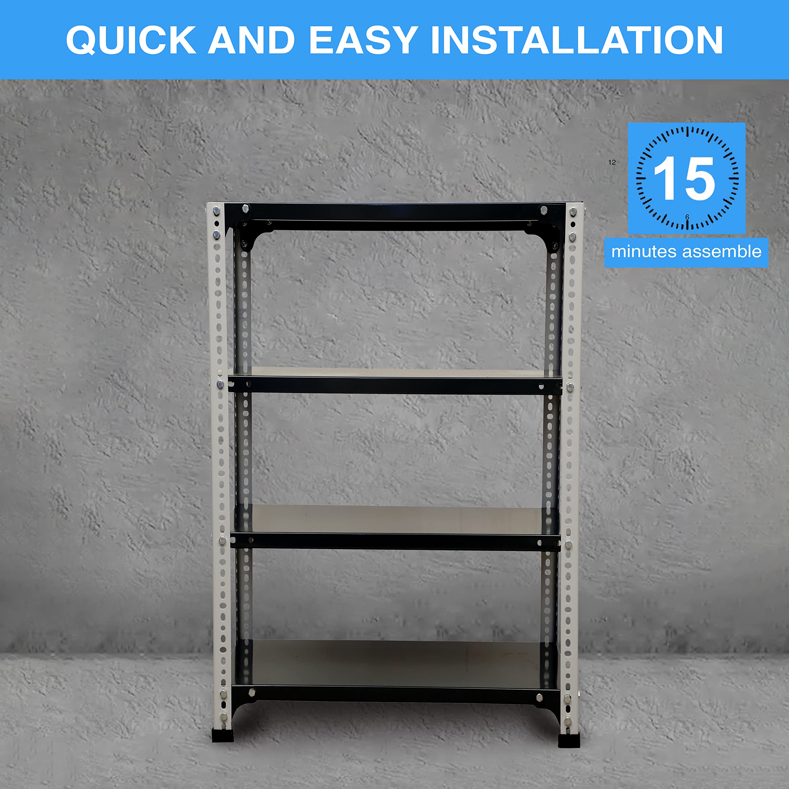 Bullet Point 2✔ Number of Shelves: 4 | Gauge: 24 Gauge | Product Name: Slotted Angle Rack/Standing Shelf Unit | Is Assembly Required ?: Yes It's very easy to assemble and quick to build within few minutes