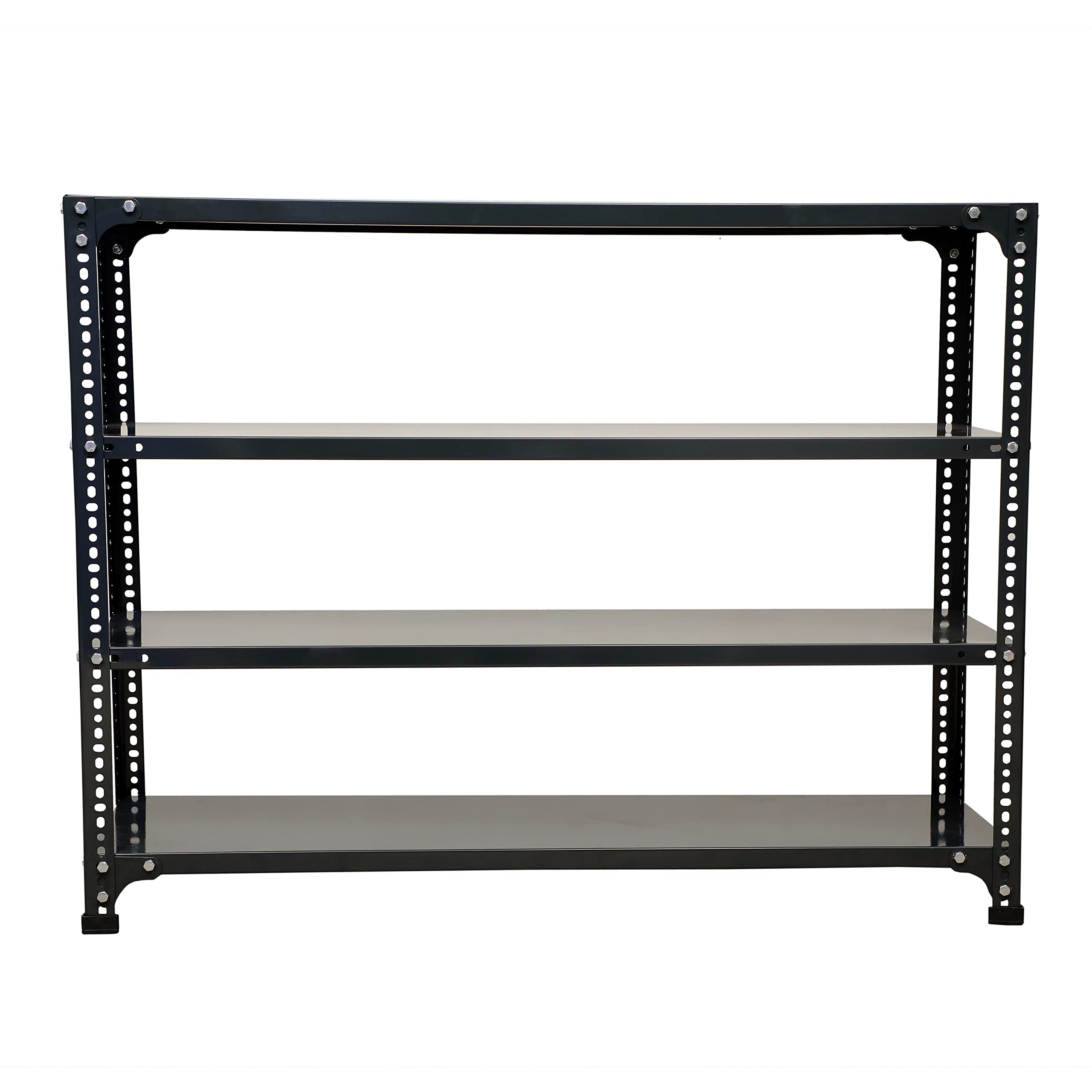 Mil-Nil Prime CRC Sheet 4 Shelf 24 Gauge Multipurpose Slotted Angle Rack | Adjustable Shelf Hight Rack for Home & Kitchen (36x47x12 Inch, 13.6 Kg, Grey) 16 Gauge Angles