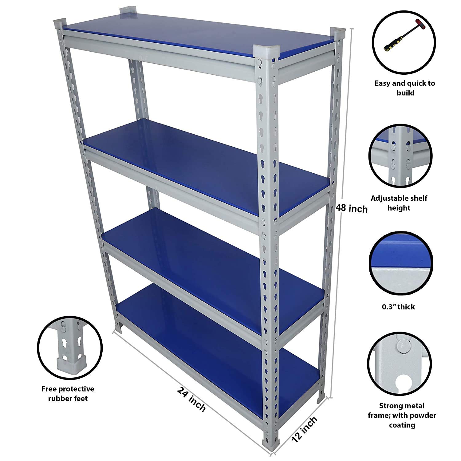 Item NameMil-Nil Prime CRC Sheet 4 Shelf Multipurpose Boltless Rack (48 x 24 x 12 Inch, Blue/Havels, Powder Coating, Glossy Finish)