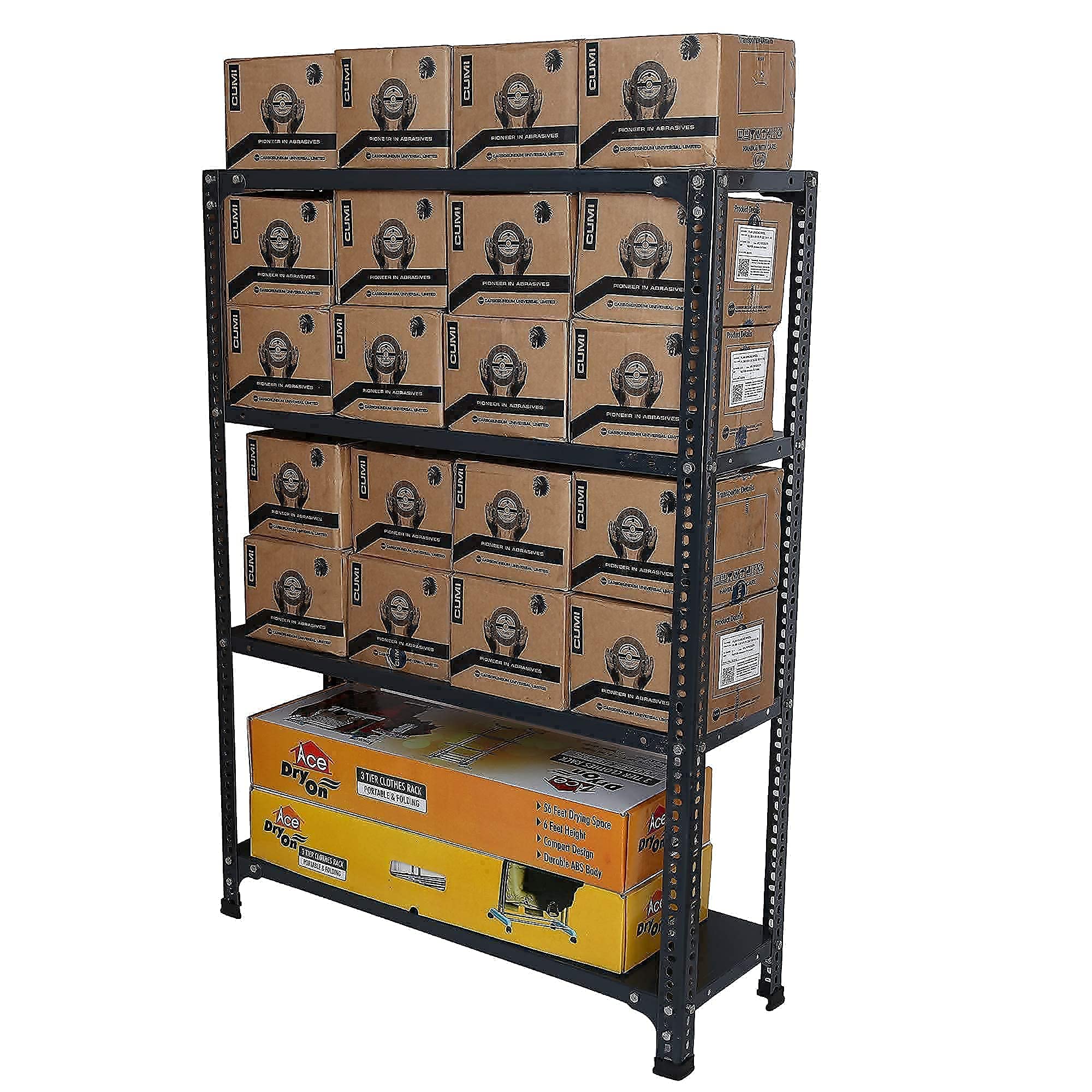 Ideal for home, office, industries and warehouse, the shelving unit offers a premium solution for everyday storage. From files and extra supplies at work to canned goods, pantry items, or small appliances in the kitchen to cans of paint, tools, seasonal household items, or holiday decorations in the garage or basement, the shelving unit helps keep it all neatly organized and easy to access. You can accommodate your clothes and books in one shelf. This rack shelf has enough looks to decorate your house and enough space to add up storage in your house. Books and clothes and other small things like toys can find their permanent place here.