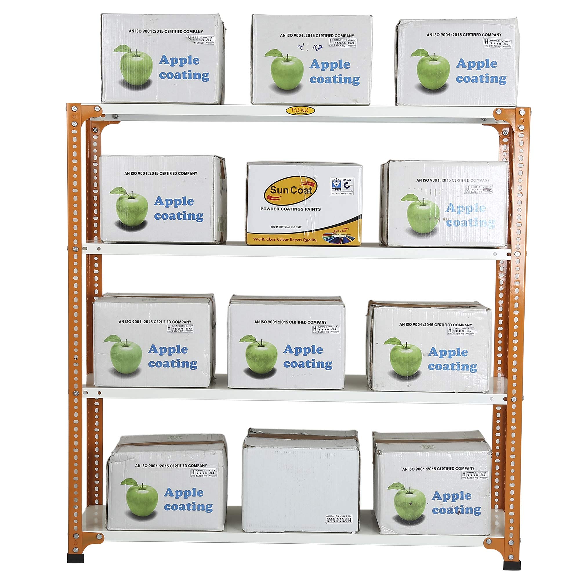 Item NameMil-Nil Prime CRC Sheet 4 Shelf Multipurpose Slotted Angle Rack, 48 x 47 x 12 Inch, 18 Gauge (Orange/Ivory) Powder Coated 14 Gauge Angles