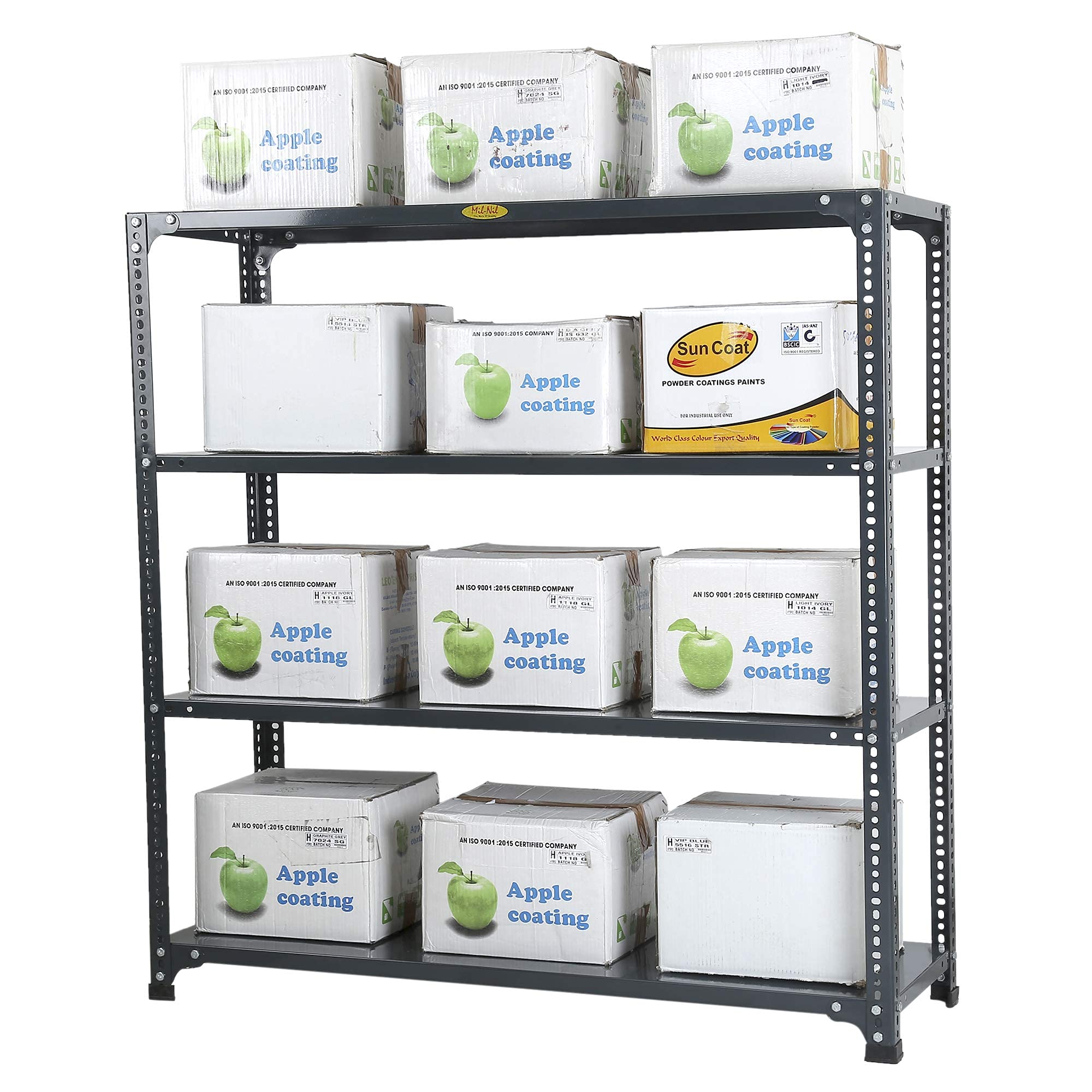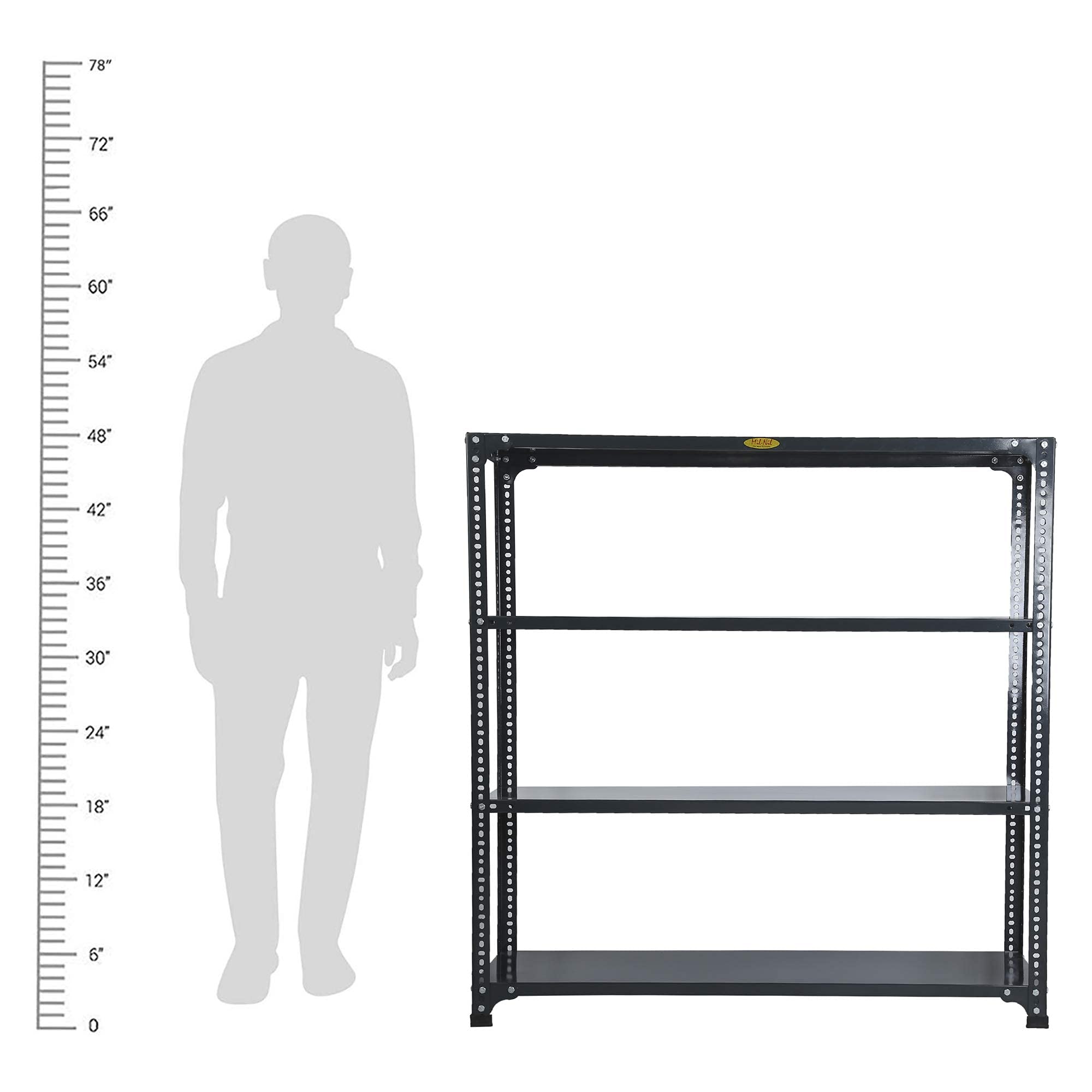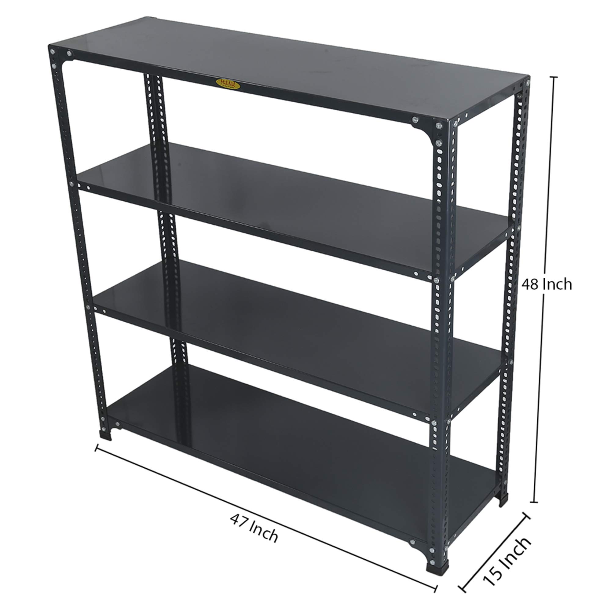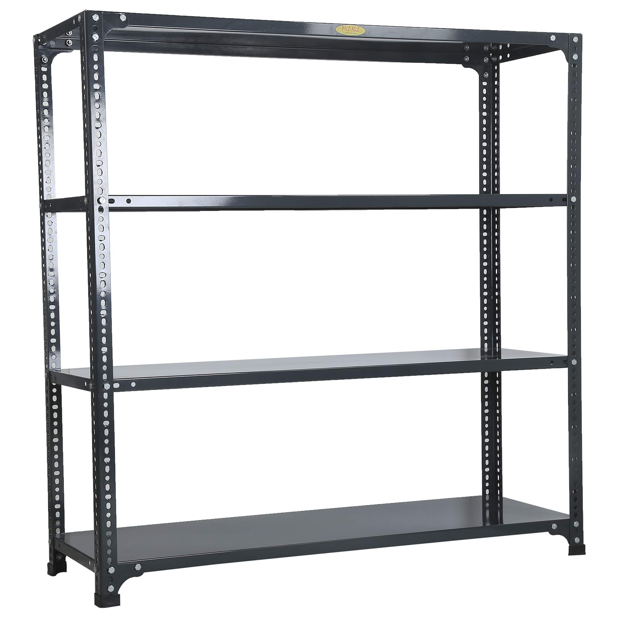 Item NameMil-Nil Prime CRC Sheet 4 Shelf Multipurpose Slotted Angle Rack, 48 x 47 x 15 Inch, 22 Gauge (Grey) 16 Gauge Angles