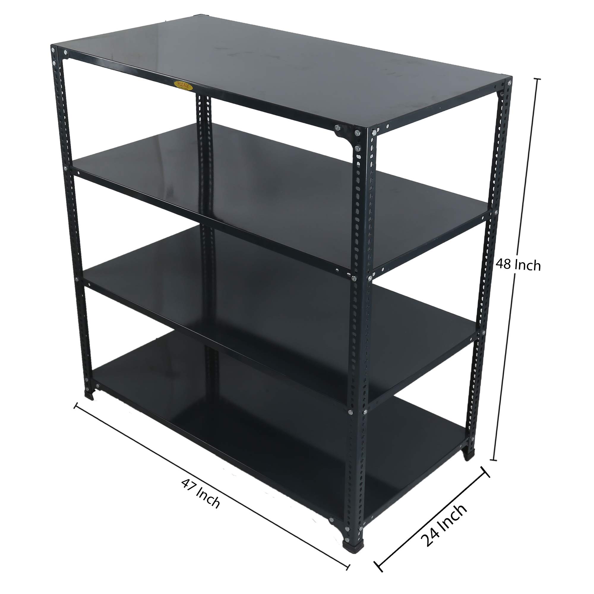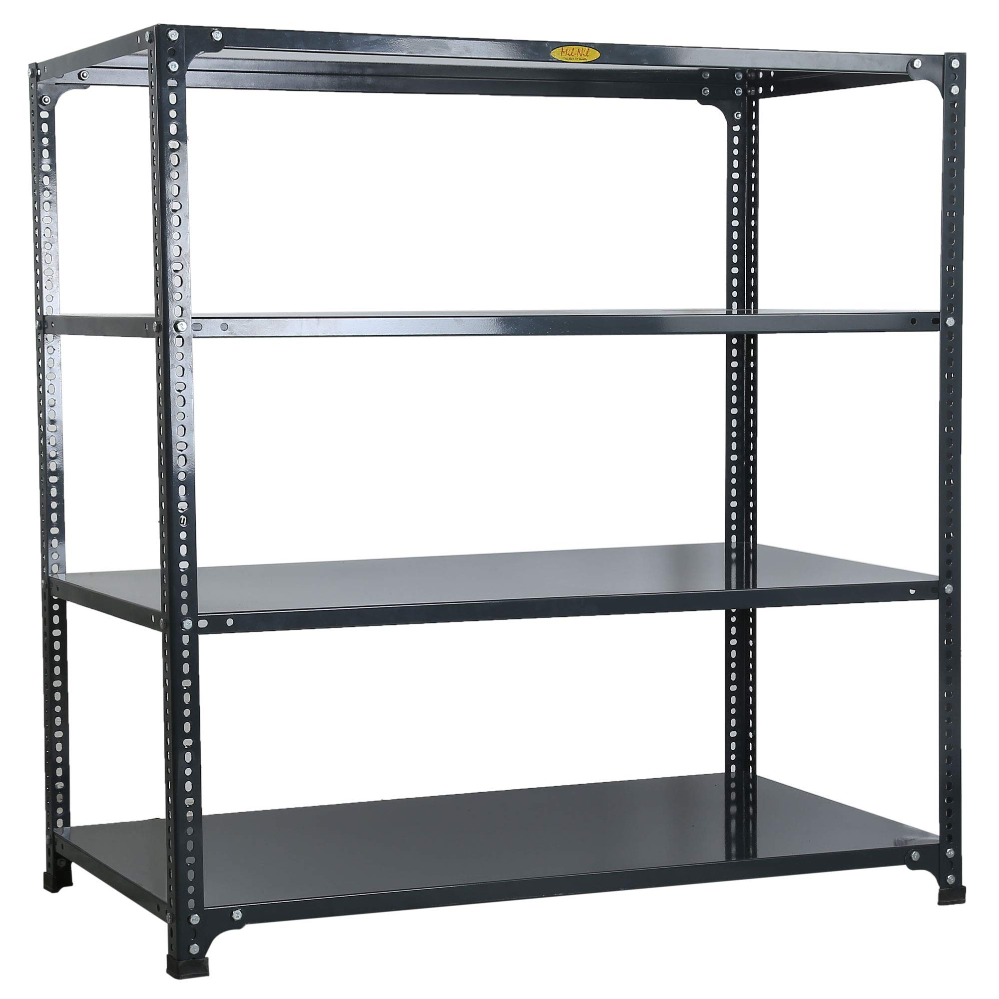 Enhance the look of your space with MILNIL rack shelf. Designed skillfully from quality materials to combine functionality with aesthetics. This product makes the right pick for any home or warehouse. You need compact racks and storage spaces to accommodate your things. Utility shelf racks can be used for multiple purposes like as a book shelf, clothes shelf, utensils shelf and anything you want to use it for. This slotted angle rack shelf is made from prime crc sheet. It has 4 shelves. It can accommodate books, clothes, small things, etc. You can laden it up to its weight capacity and enjoy the added space in your house.