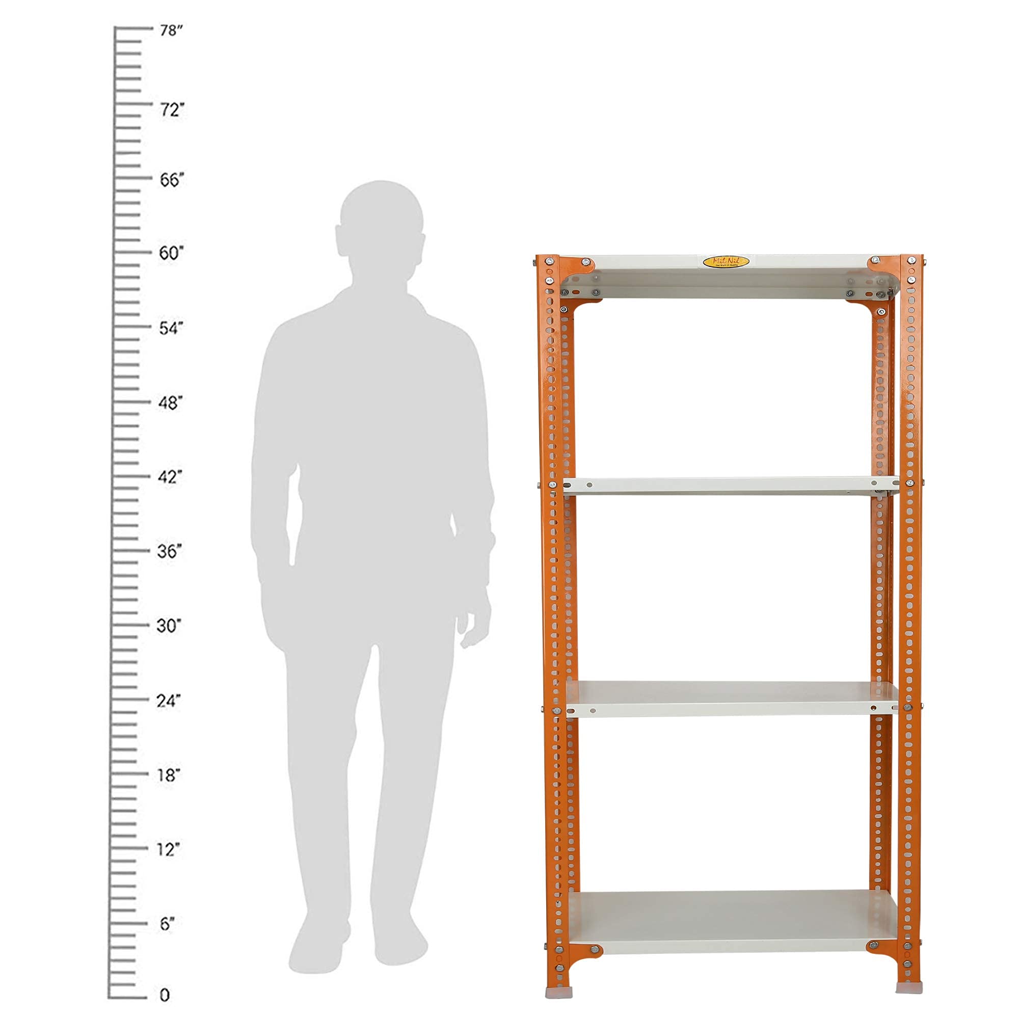 Mil-Nil Prime CRC Sheet 4 Shelf Multipurpose Slotted Angle Rack, 60 x 24 x 15 Inch [(Orange-Ivory) Powder Coating] 16 Gauge Angles