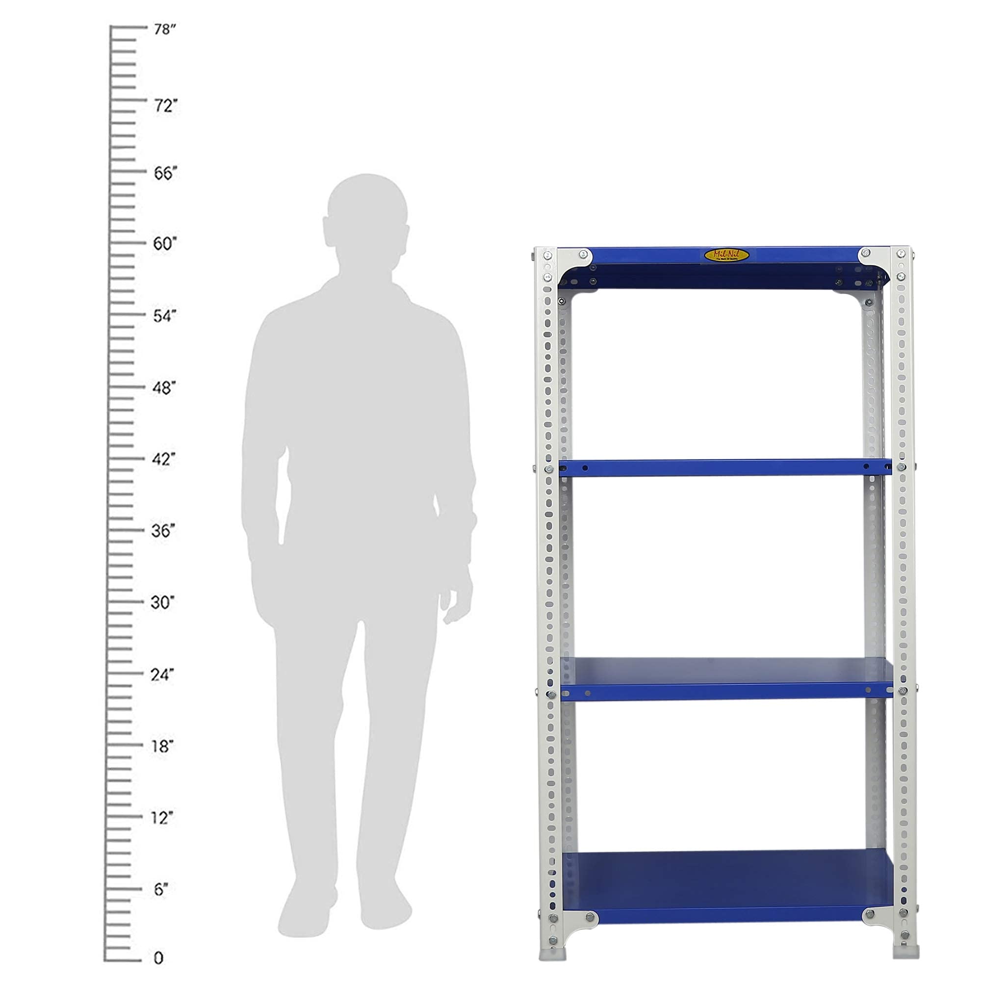 Mil-Nil Prime CRC Sheet 4 Shelf Multipurpose Slotted Angle Rack, 60 x 36 x 24 Inch, 20 Gauge [(Blue-White) Powder Coating] 14 Gauge Angles