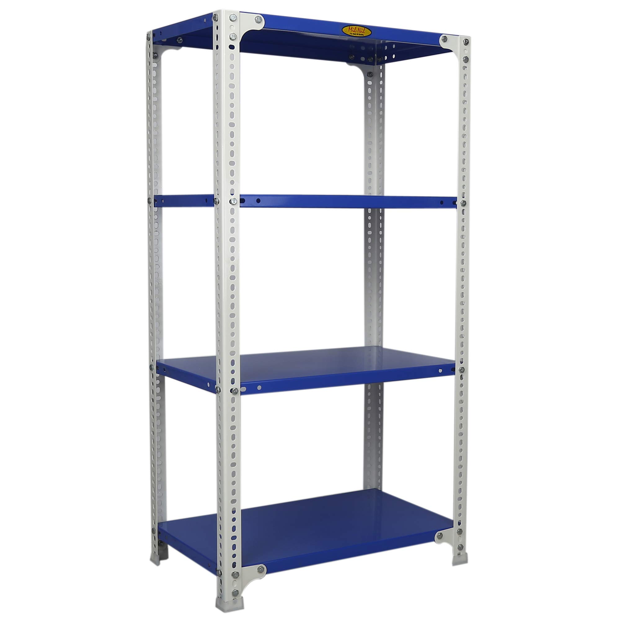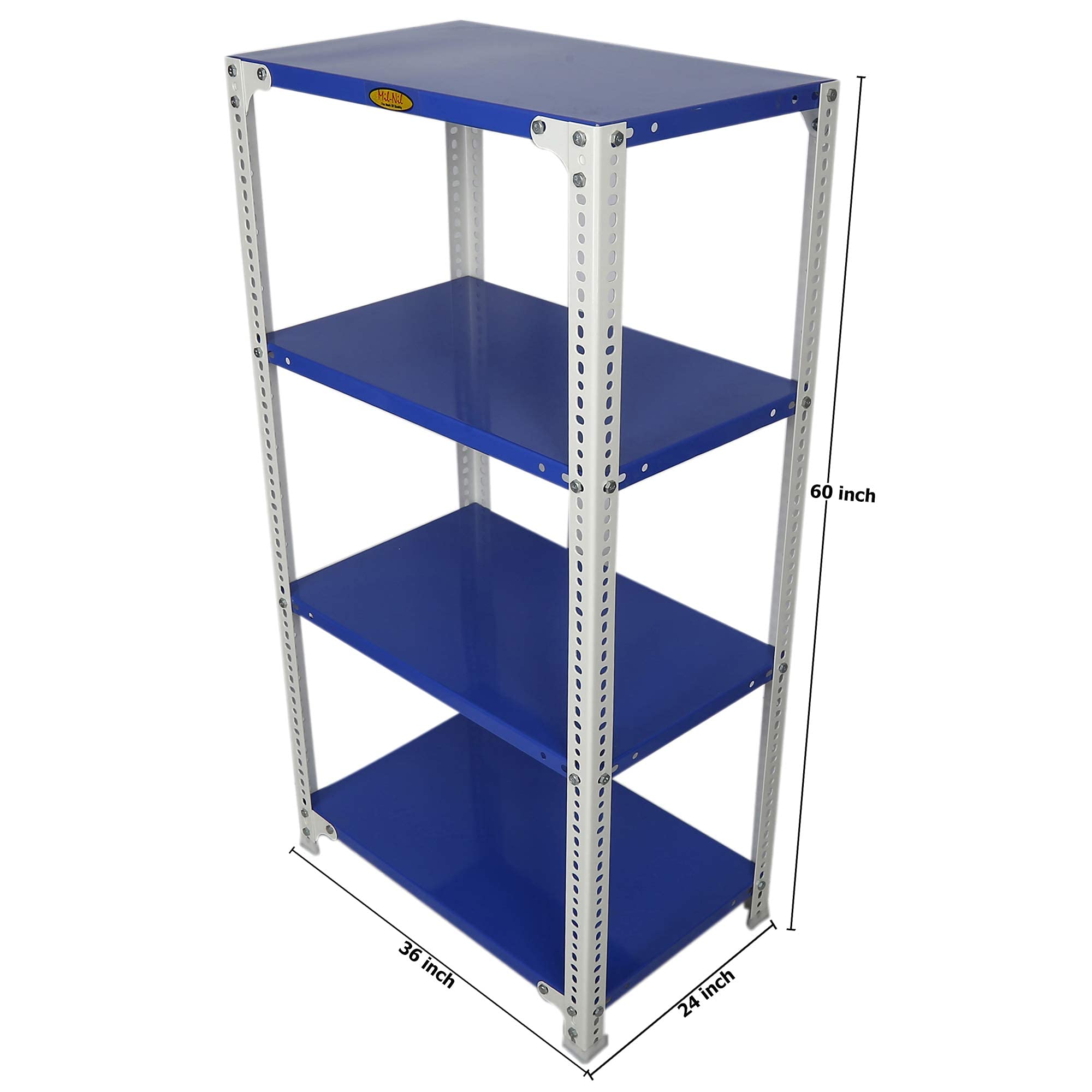 Item NameMil-Nil Prime CRC Sheet 4 Shelf Multipurpose Slotted Angle Rack, 60 x 36 x 24 Inch, 20 Gauge [(Blue-White) Powder Coating] 14 Gauge Angles
