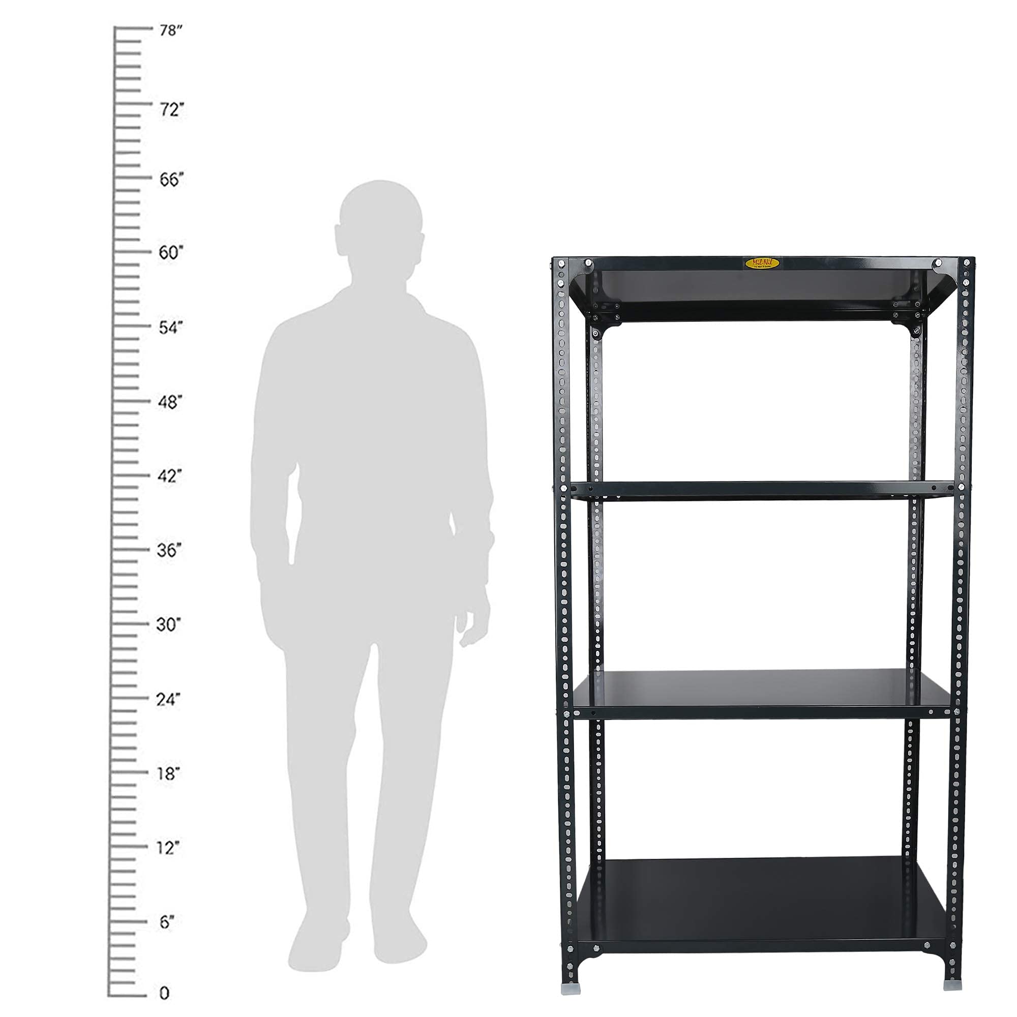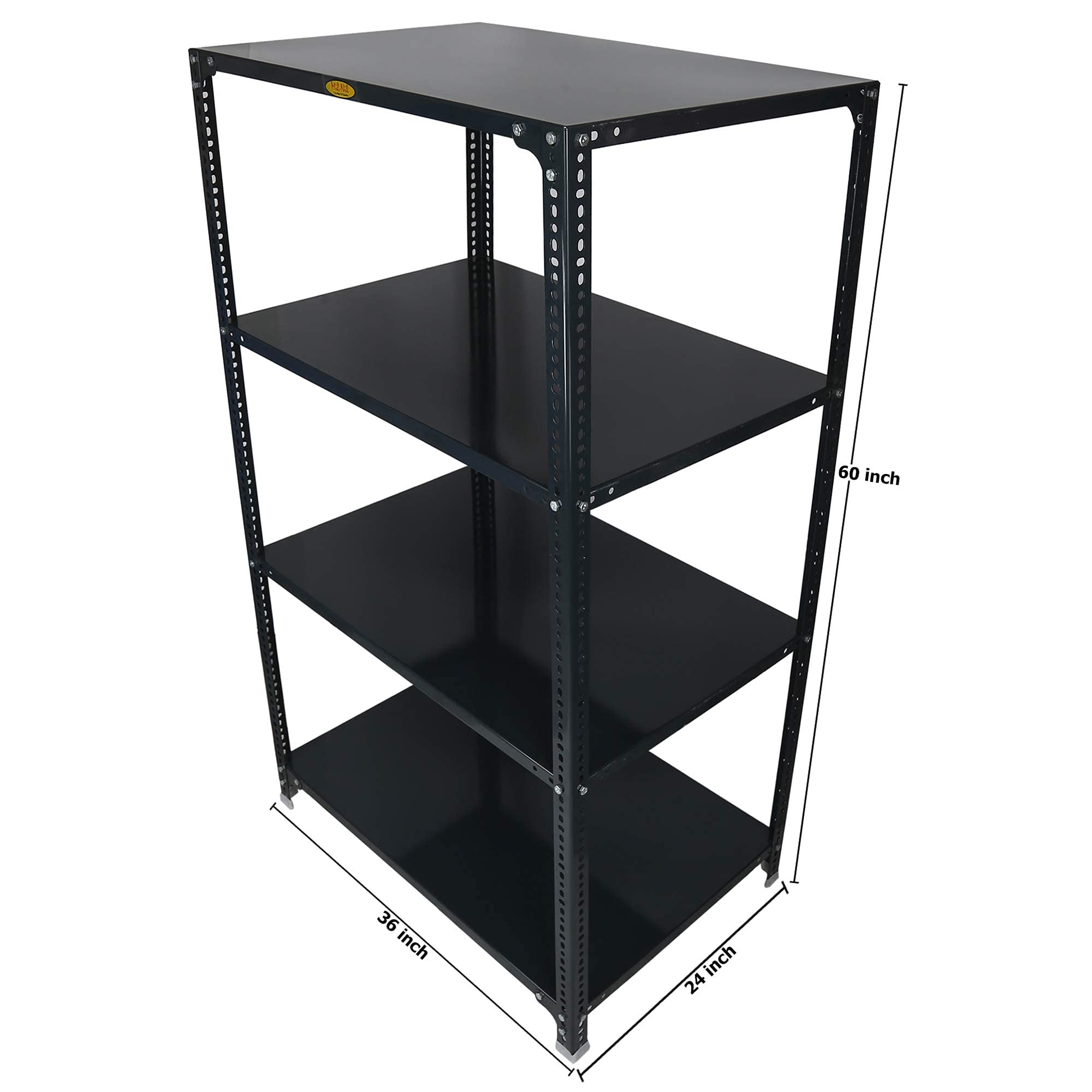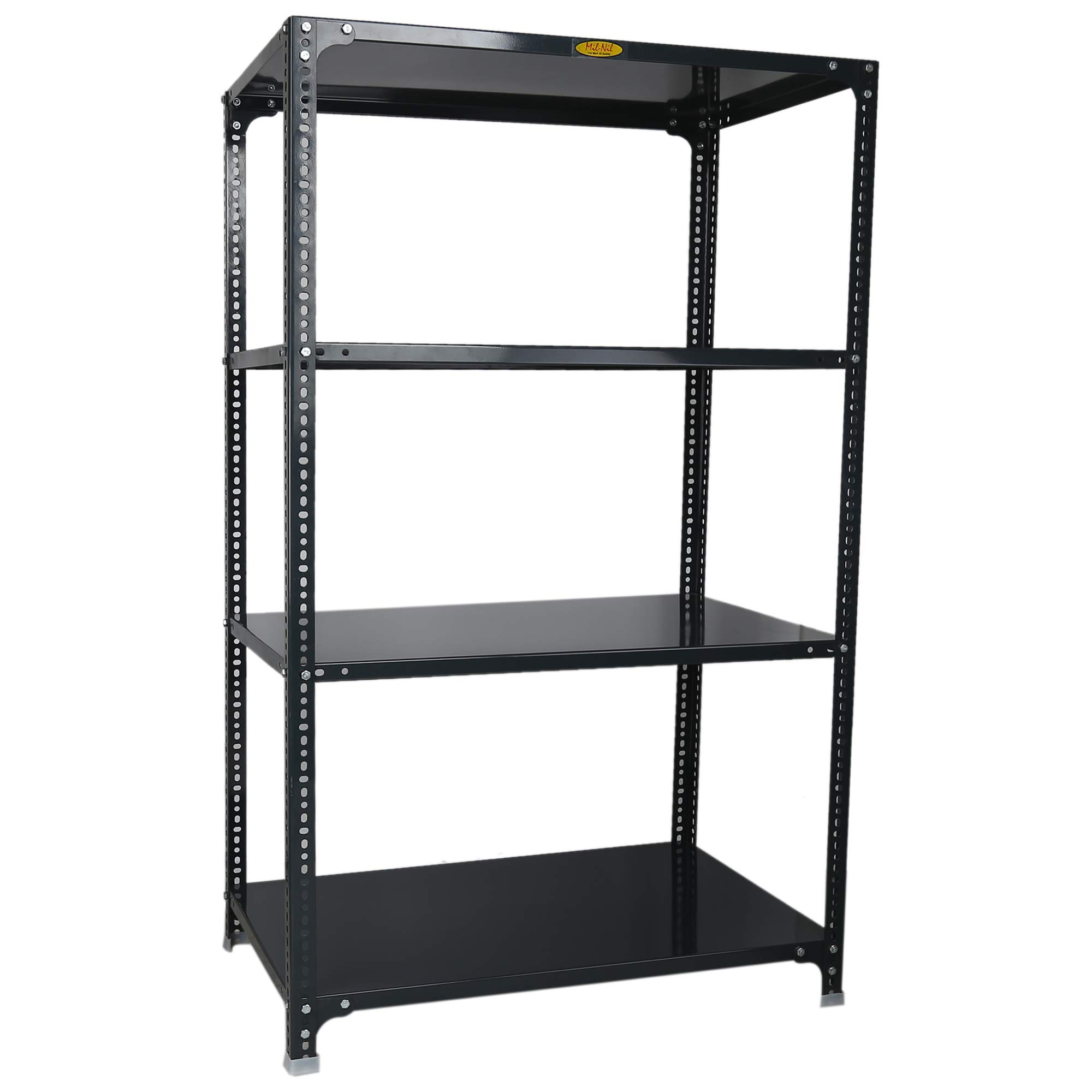 Item NameMil-Nil Prime CRC Sheet 4 Shelf Multipurpose Slotted Angle Rack, 60 x 36 x 24 Inch, 22 Gauge (Grey) 16 Gauge Angles