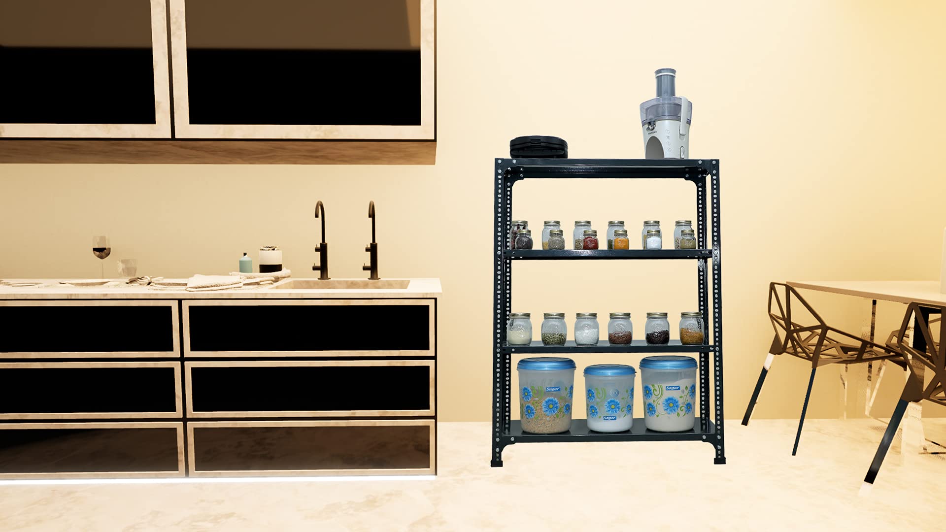Keywords Utility shelf racks 3-shelf 4-shelf 5-shelf 6-clothes books rack home warehouse industries multipurpose storage shelves room office kitchen recks black storage unit corner shelves slotted angle