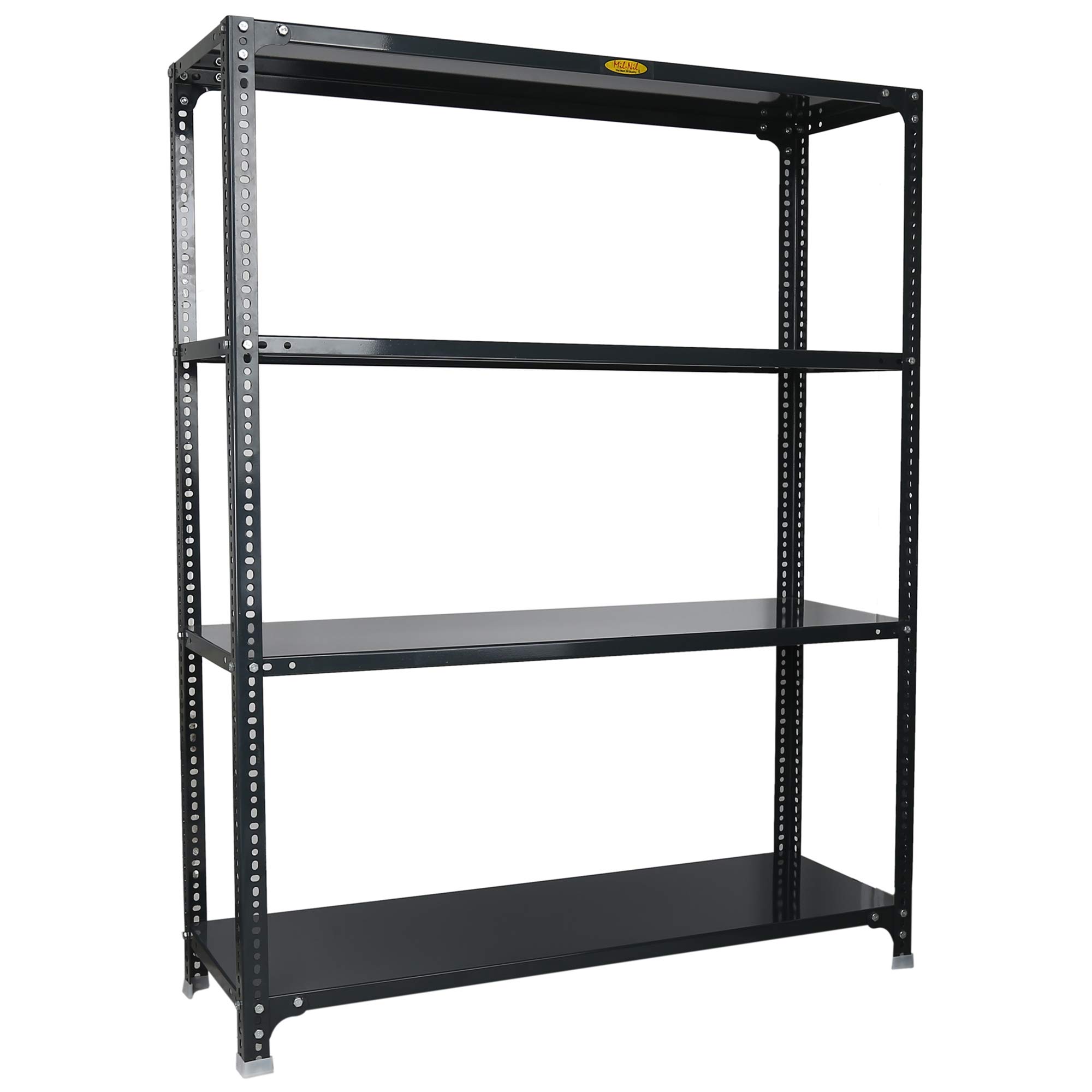 Item NameMil-Nil Prime CRC Sheet 4 Shelf Multipurpose Slotted Angle Rack, 60 x 47 x 15 Inch, 20 Gauge (Grey) 14 Gauge Angles