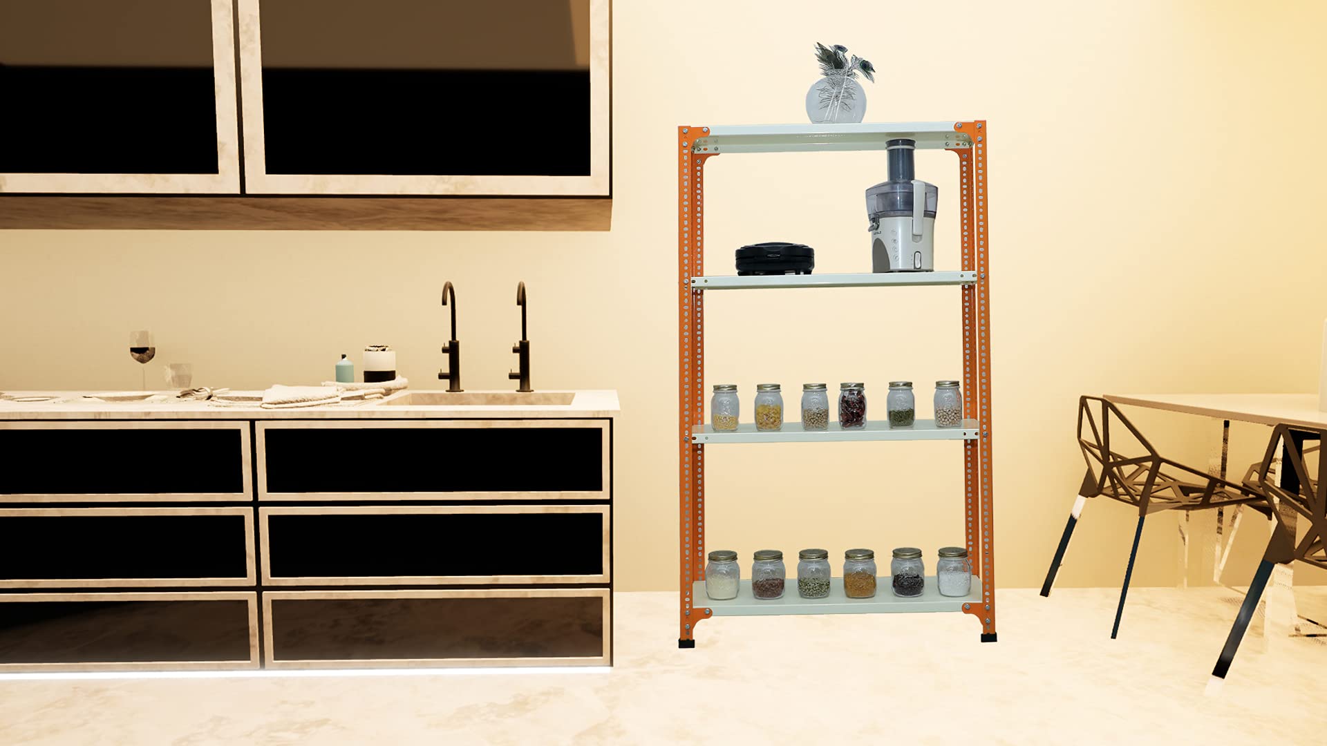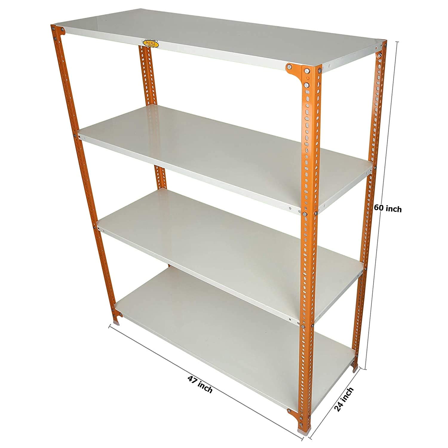 Enhance the look of your space with MILNIL rack shelf. Designed skillfully from quality materials to combine functionality with aesthetics. This product makes the right pick for any home or warehouse. You need compact racks and storage spaces to accommodate your things. Utility shelf racks can be used for multiple purposes like as a book shelf, clothes shelf, utensils shelf and anything you want to use it for. This slotted angle rack shelf is made from prime crc sheet. It has 4 shelves. It can accommodate books, clothes, small things, etc. You can laden it up to its weight capacity and enjoy the added space in your house.