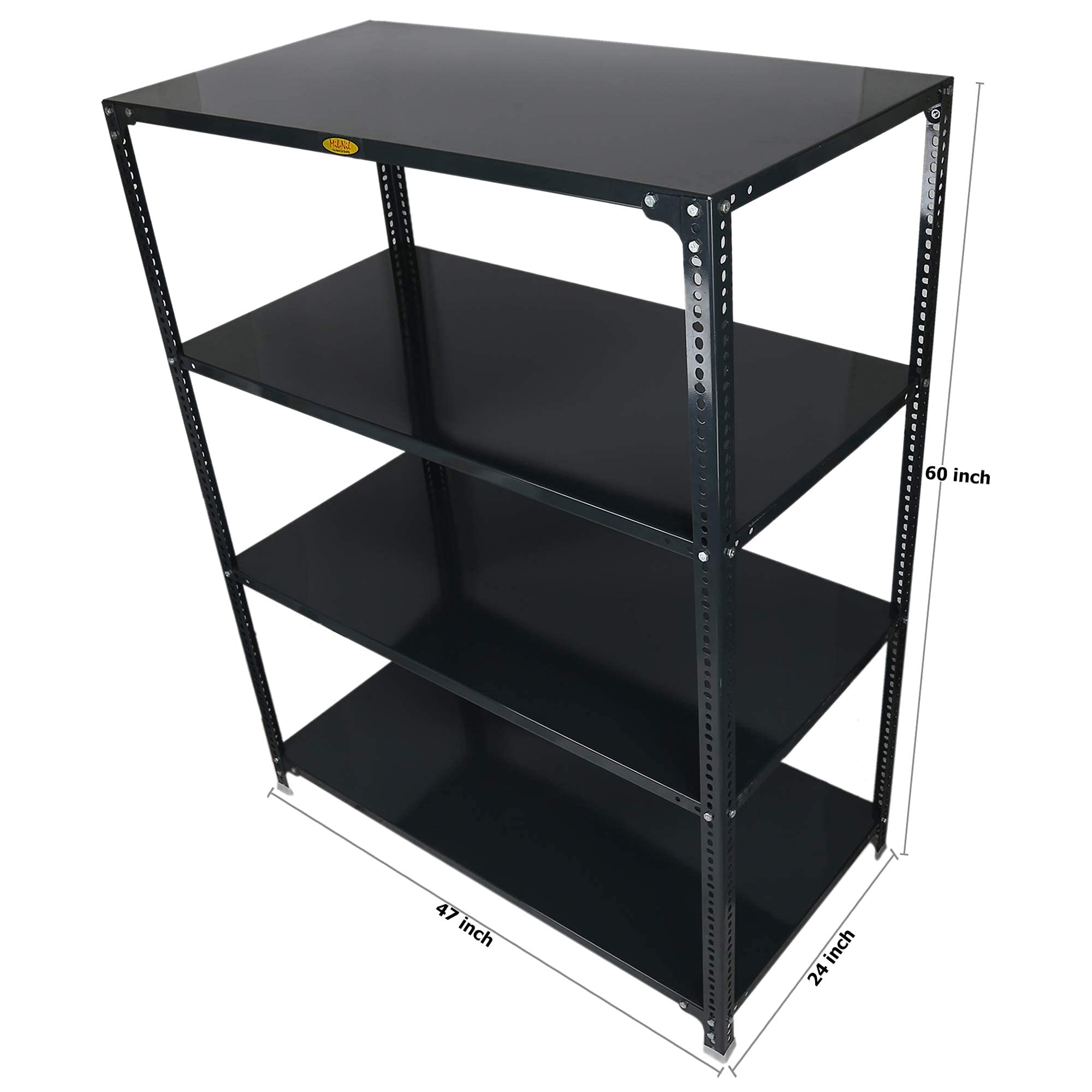 Enhance the look of your space with MILNIL rack shelf. Designed skillfully from quality materials to combine functionality with aesthetics. This product makes the right pick for any home or warehouse. You need compact racks and storage spaces to accommodate your things. Utility shelf racks can be used for multiple purposes like as a book shelf, clothes shelf, utensils shelf and anything you want to use it for. This slotted angle rack shelf is made from prime crc sheet. It has 4 shelves. It can accommodate books, clothes, small things, etc. You can laden it up to its weight capacity and enjoy the added space in your house.